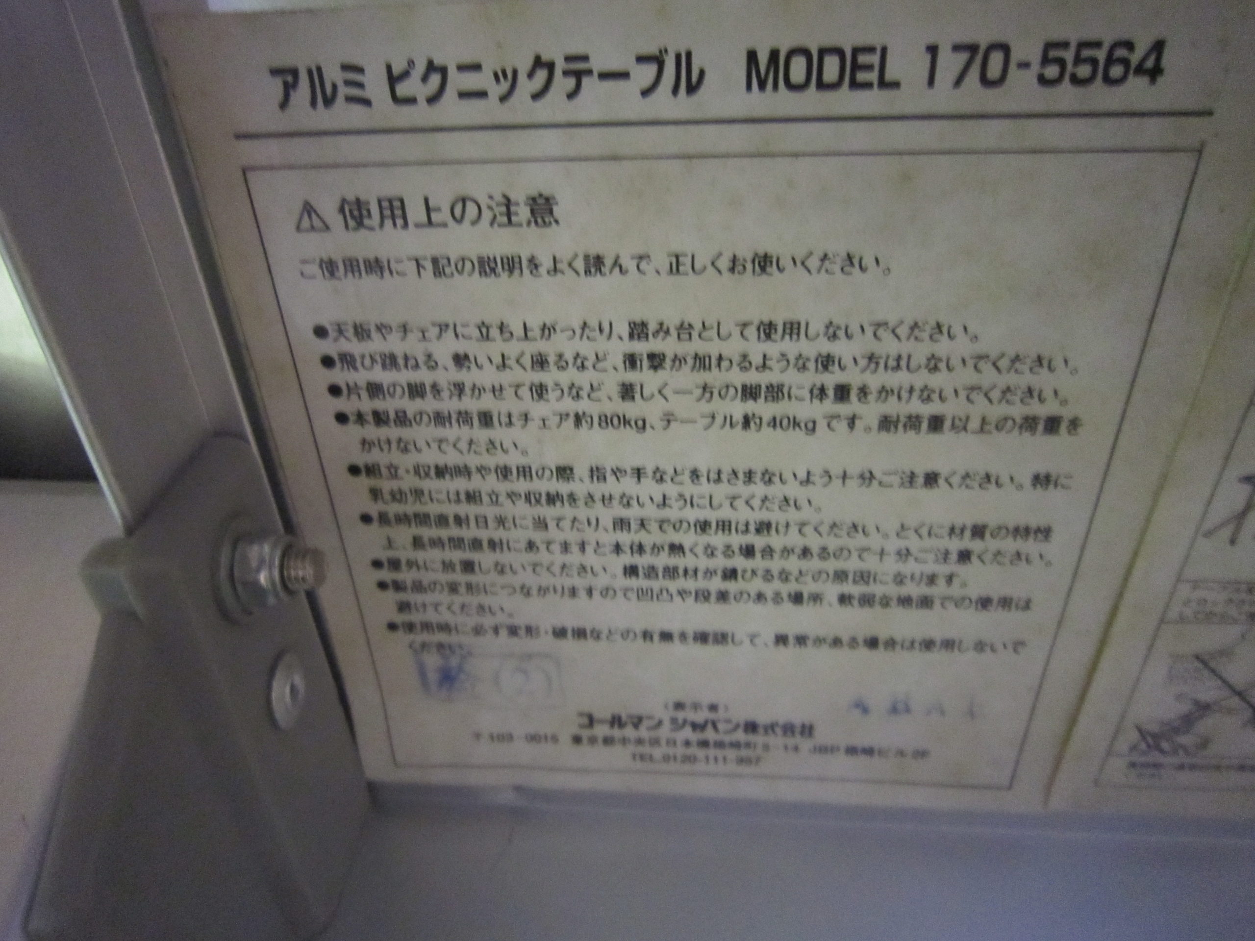 コールマン Coleman アルミピクニックテーブル 品番170-5564 アウトドア用品 買取しました。