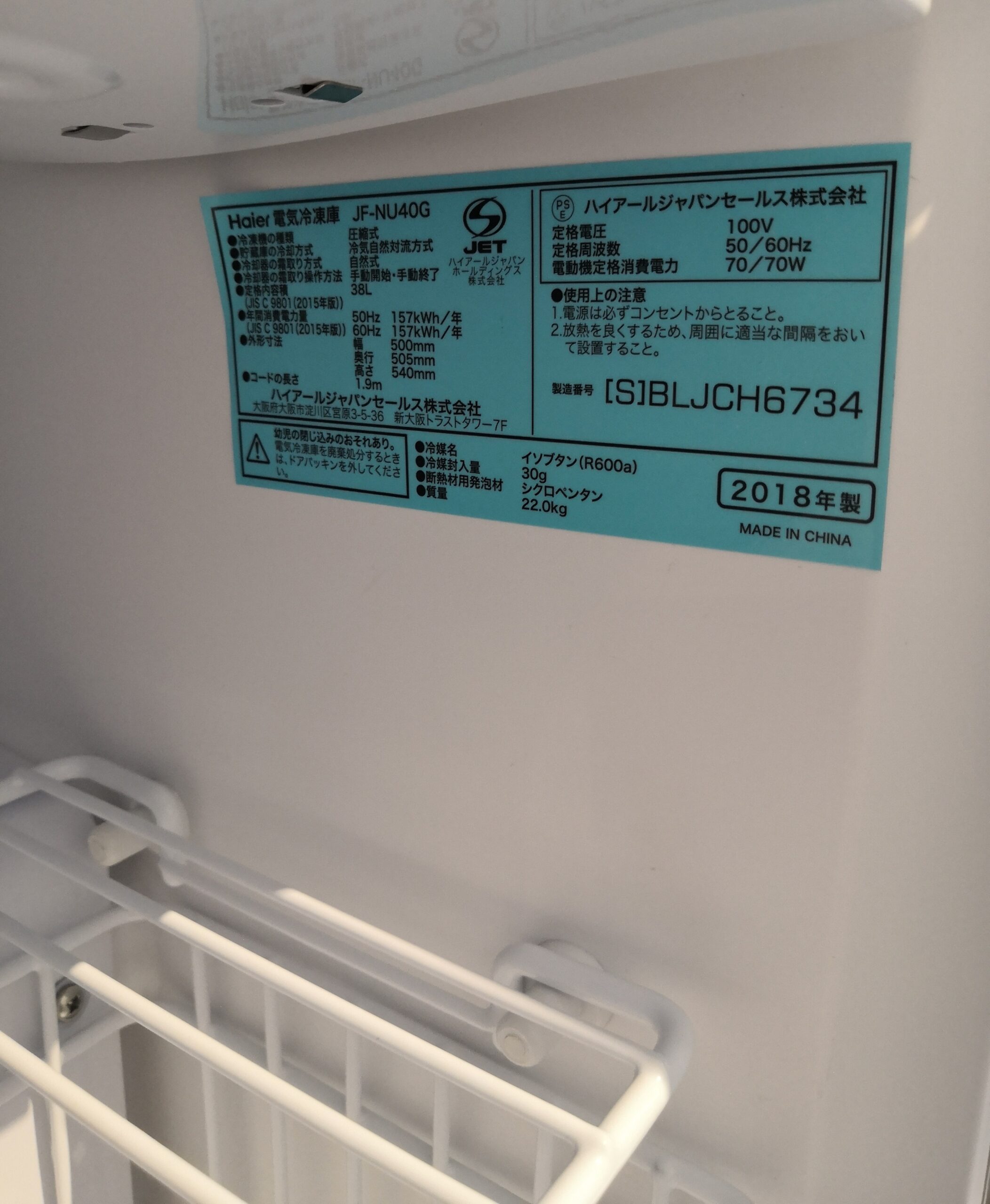 Haier ハイアール フリーザー Freezer 38ℓ 2018年製 冷凍庫買取しました。