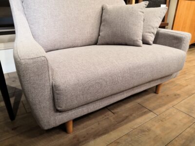 色んなテイストのお部屋に合わせやすいシンプルなデザイン、ナチュラルな印象の2人掛けソファ。