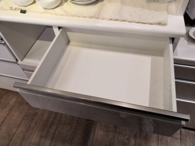 引き出し上2段はオートクロージング。しっかり閉めなくても自動でスムーズに閉まるので便利です。