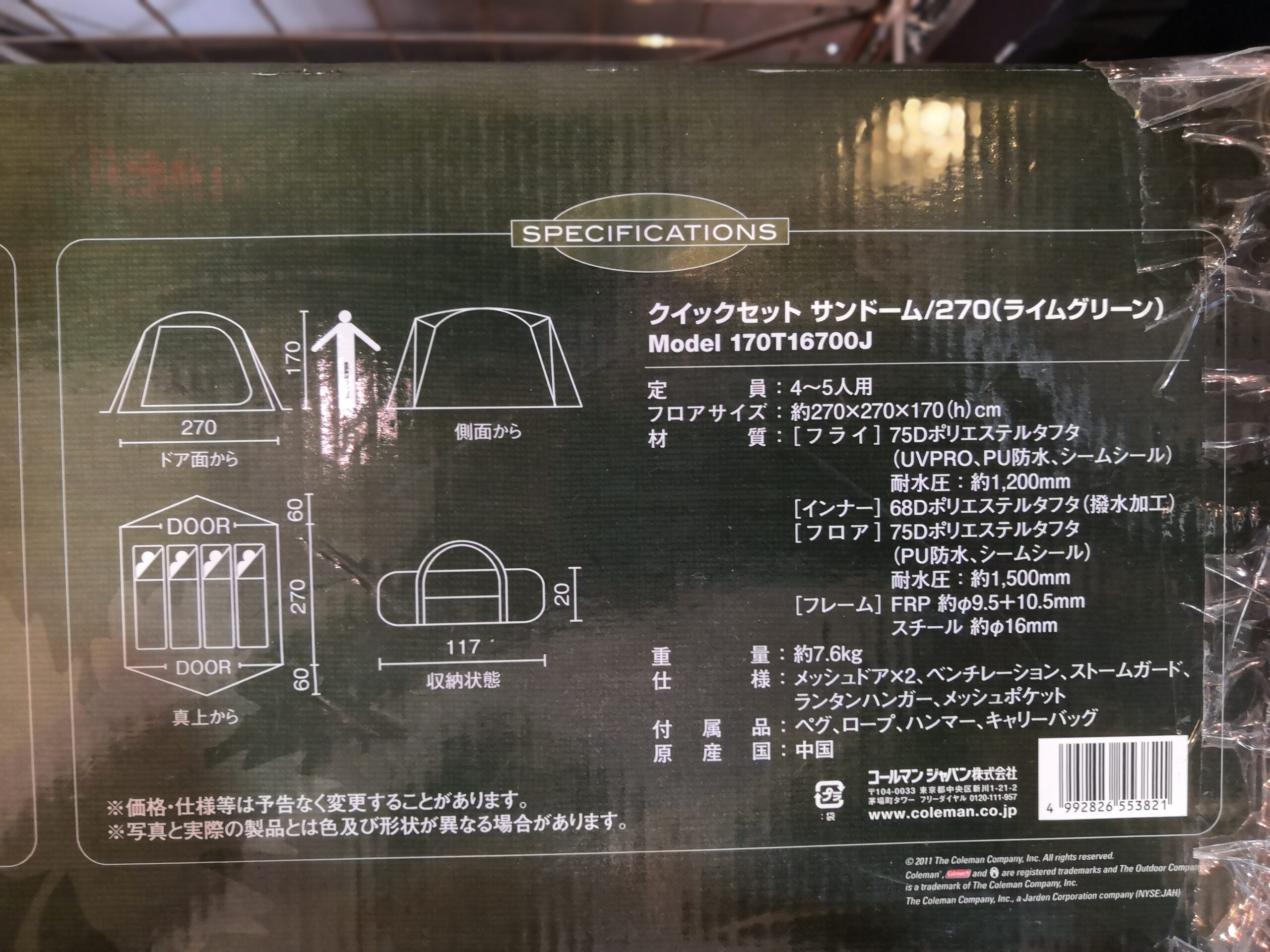 中古 Coleman コールマン クイックセット Sundome サンドーム 270 ドームテント 4〜5人用 ライムグリーン 愛知 名古屋 再良市場 リサイクルショップ