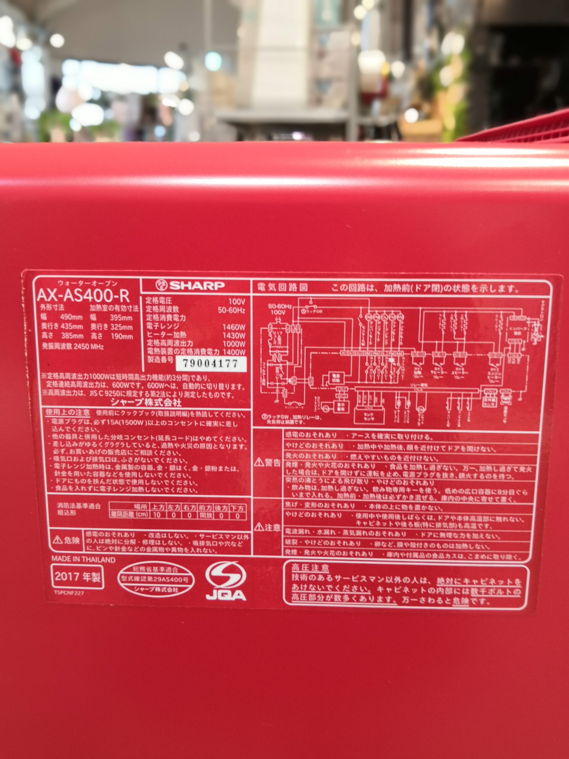 中古 SHARP シャープ オーブンレンジ ウォーターオーブン HEALSIO ヘルシオ AX-AS400-R 脱油 減塩 愛知 名古屋 再良市場 リサイクルショップ