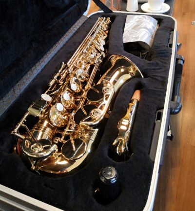 こちらは、世界中のアーティストから愛され続けているサックス「H.セルマー」の日本総代理店である野中貿易(株)がプロデュースするアルトサックス。ケース、付属品付きです。