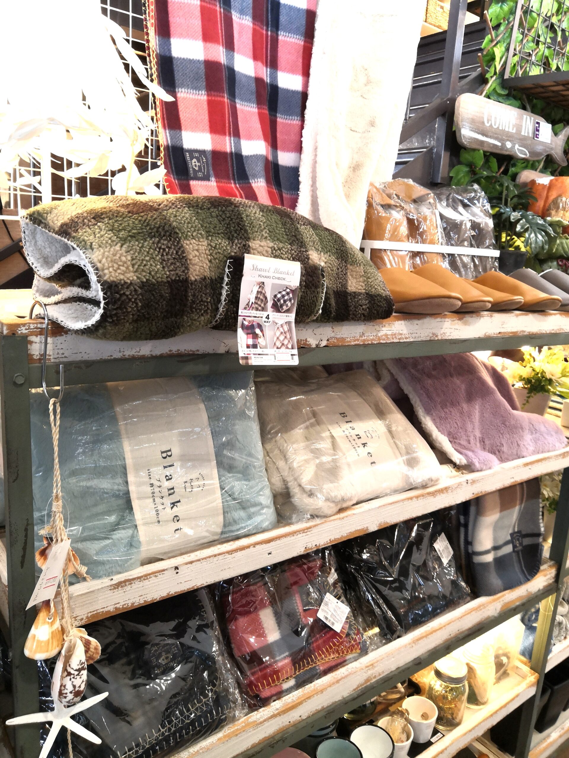 ◎こちらは人気のブランケット!ポンチョにもマフラーにも出来るブランケットもあれば、チェック柄のお値打ちなブランケットもあります☆