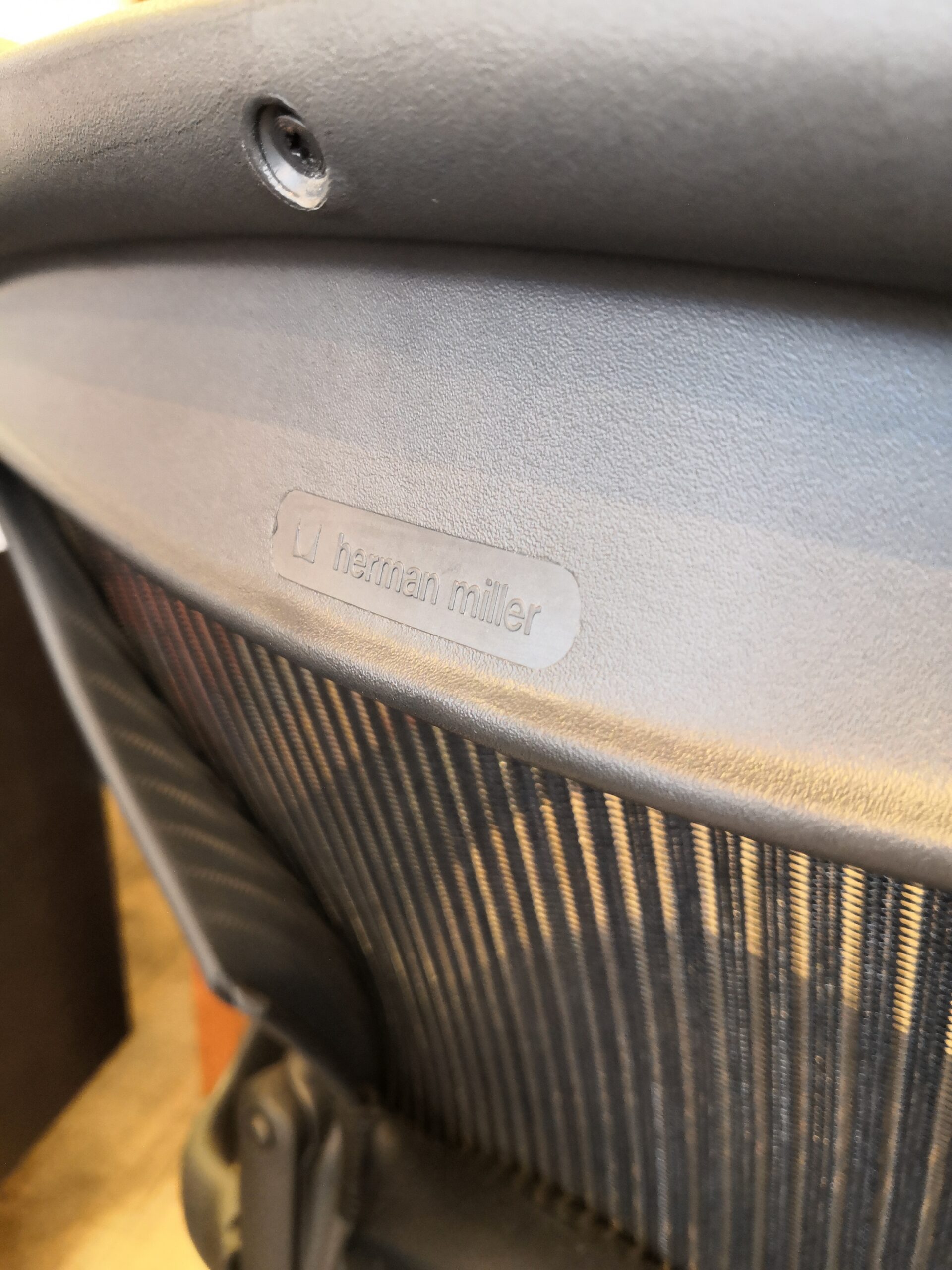 ◎ちなみにアーロンチェアのサイズを確認するには、チェアの後ろに立って背もたれのフレームの上端にある「Herman Miller」ロゴの裏側に指を入れてみてください。 小さな突起があります。 突起が1つならサイズA、2つ並んでいたらサイズB、3つが三角形を成していたらサイズCです。