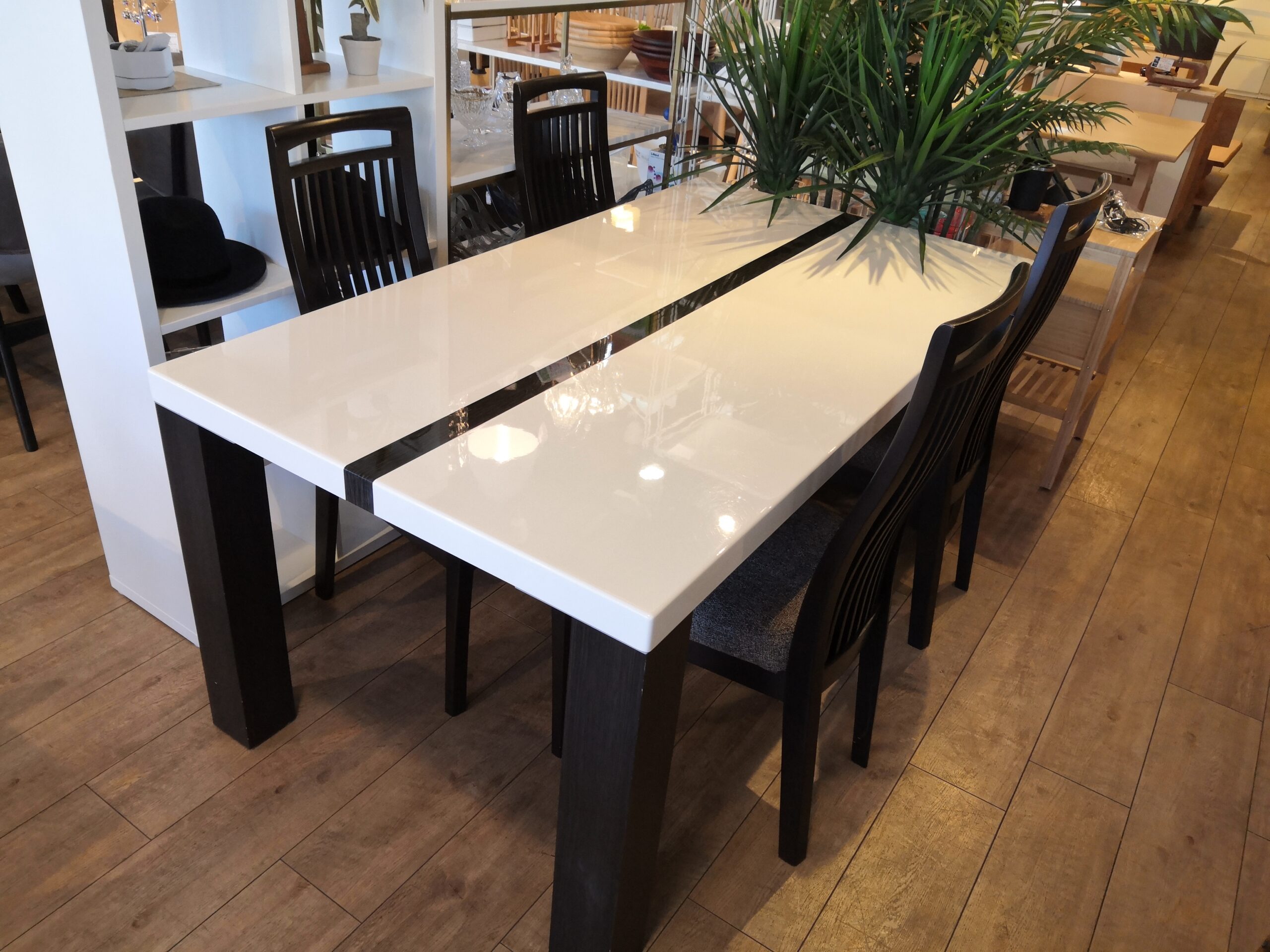 ◎白の鏡面仕上げにブラックラインがスタイリッシュなダイニングテーブルセットです★