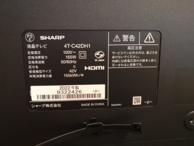 大森店より本日は、SHARP シャープ AQUOS 4T-C42DH1 2022年製 42インチ 液晶テレビ をご案内です。