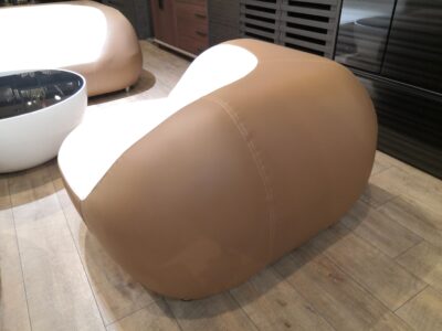 お椀型のコーヒーテーブルと半円形のソファが今までにない、お部屋の雰囲気を演出します!