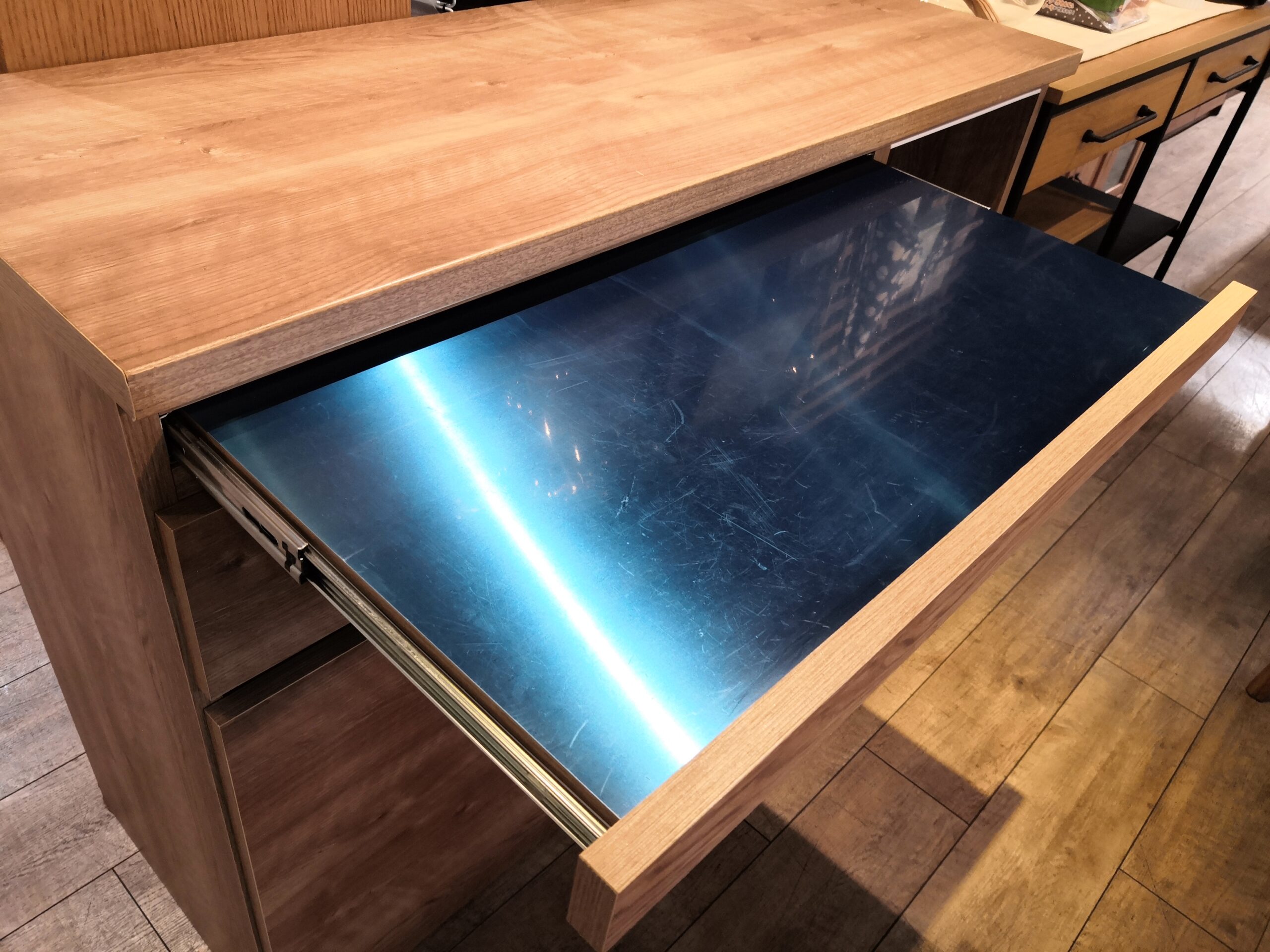 ◎天板下には、ステンレストップのスライド作業台が収納されています★