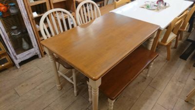 ☆ベンチダイニング4点セット カントリー調 レトロ 北欧 ナチュラル 食卓テーブル 買取しました☆