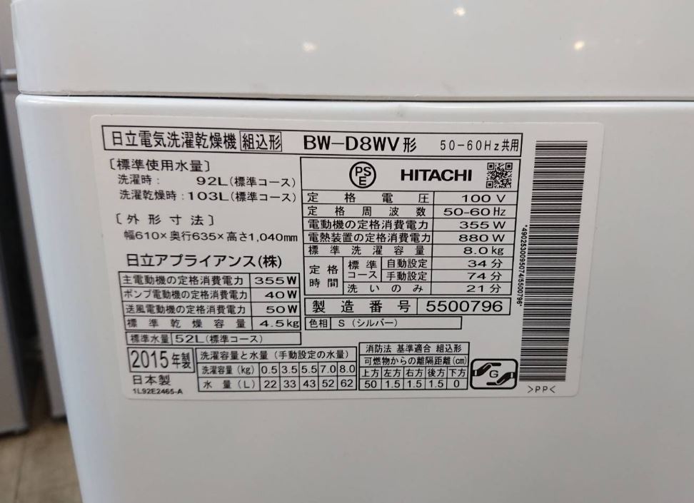 ☆HITACHI 日立 8.0/4.5㎏ 洗濯乾燥機 BEAT WASH ビートウォッシュ 買取しました☆