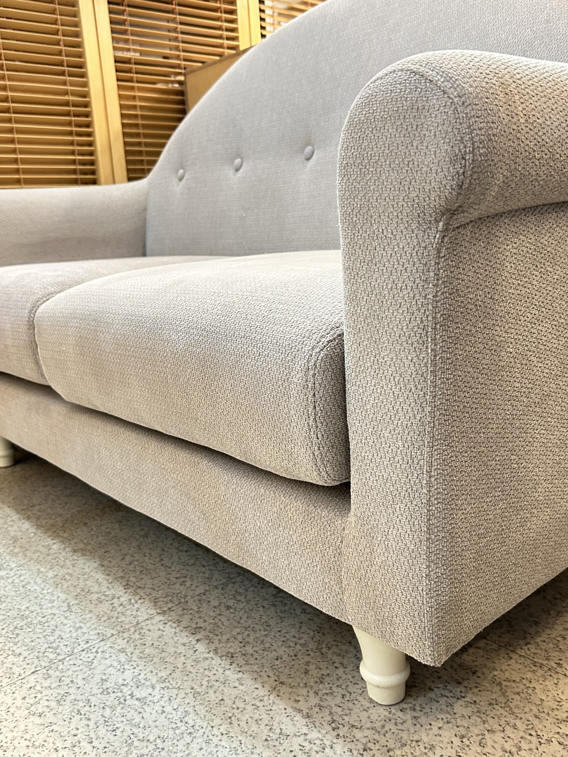 柔らかな丸みのあるフォルムにロクロ脚がスウィートなソファ。