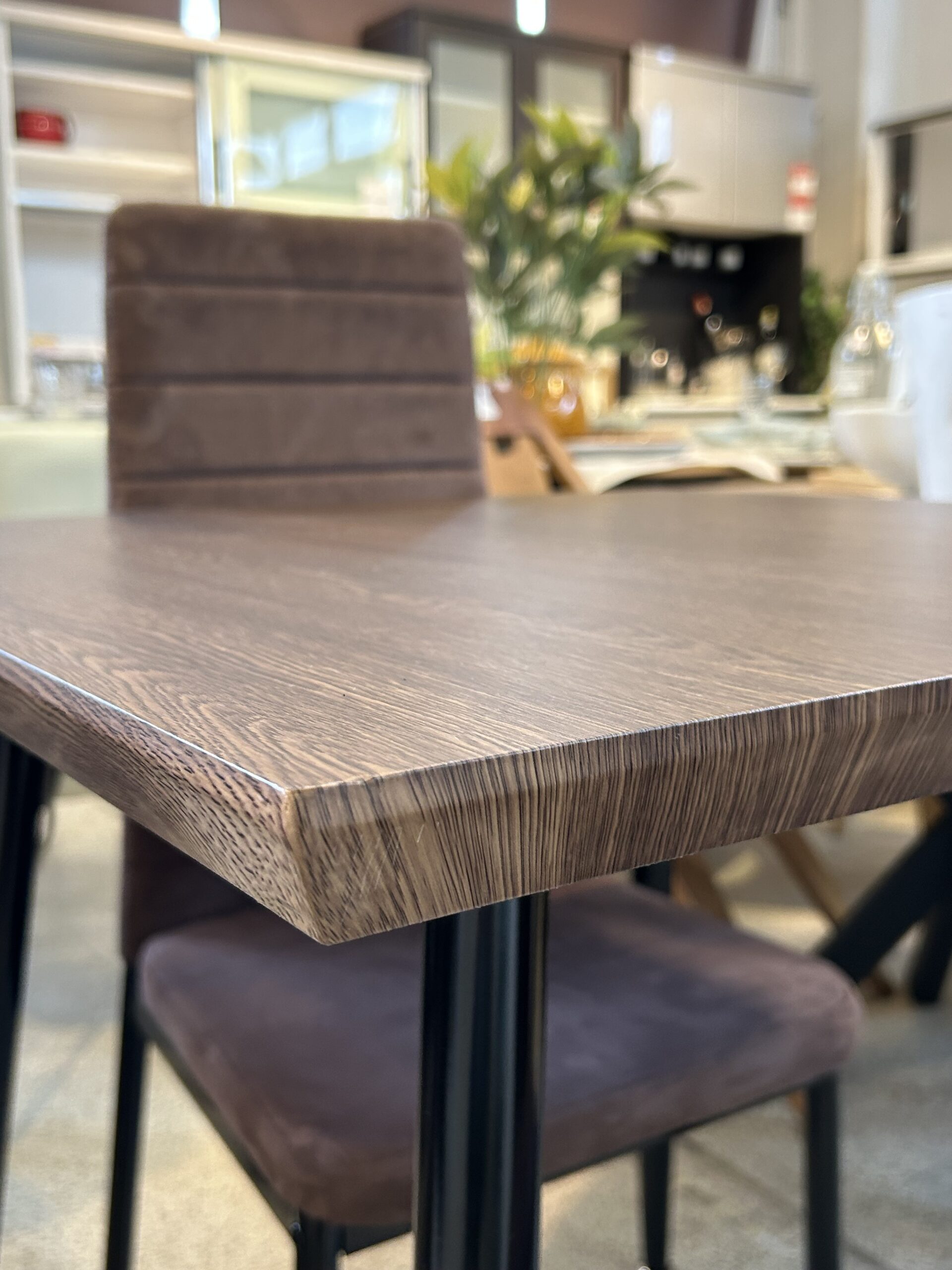 ナチュラルウッドの天板とブラック脚の組み合わせが特徴で、カフェ風の雰囲気を作りやすいのが魅力です。