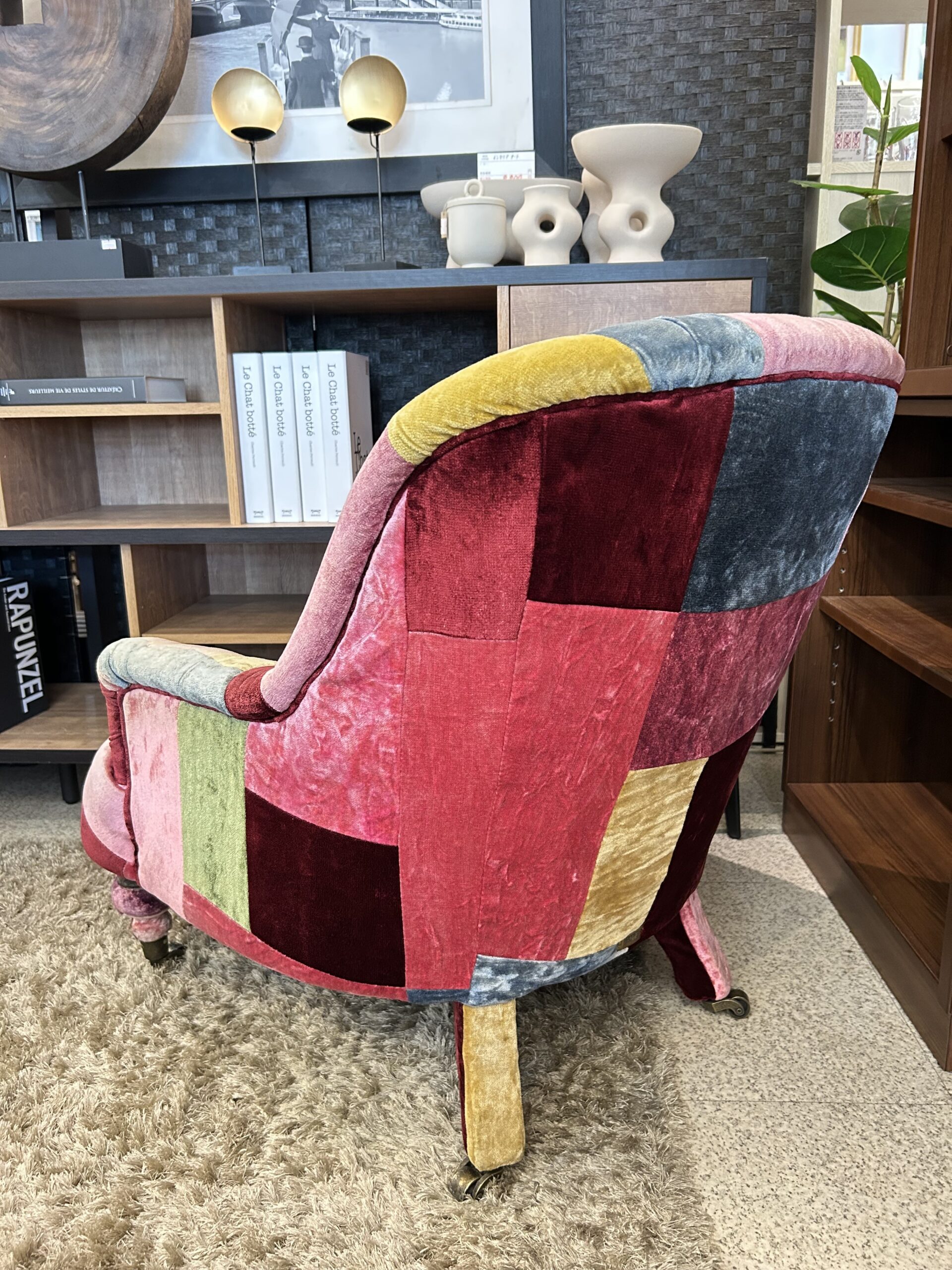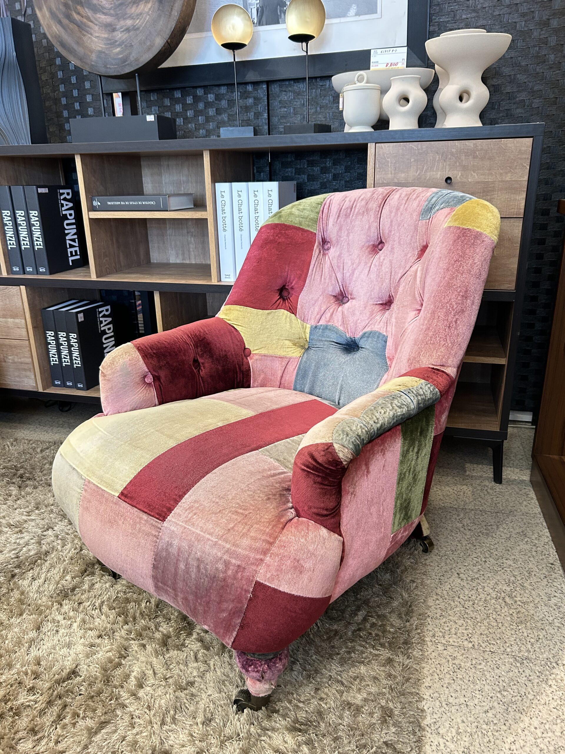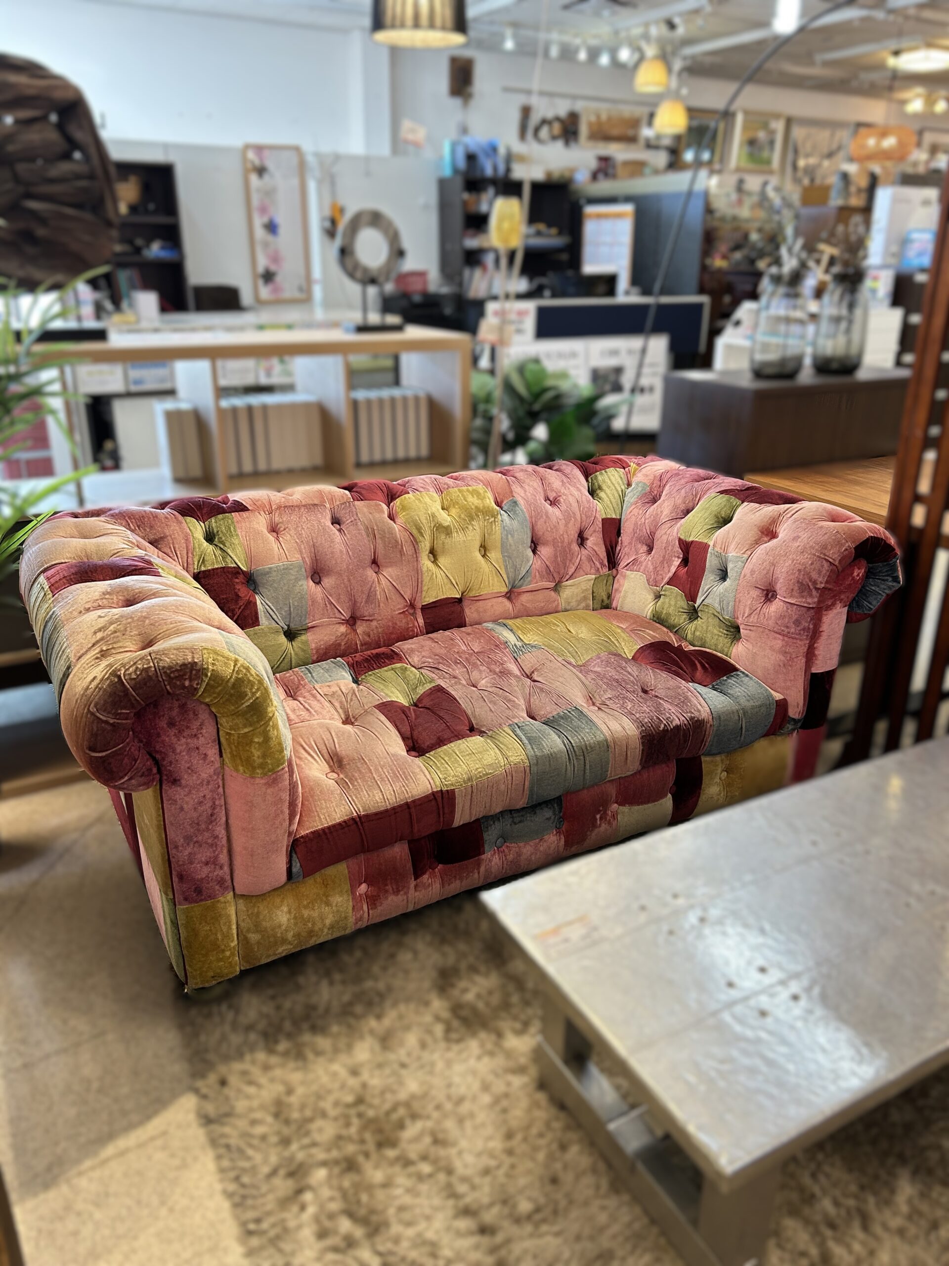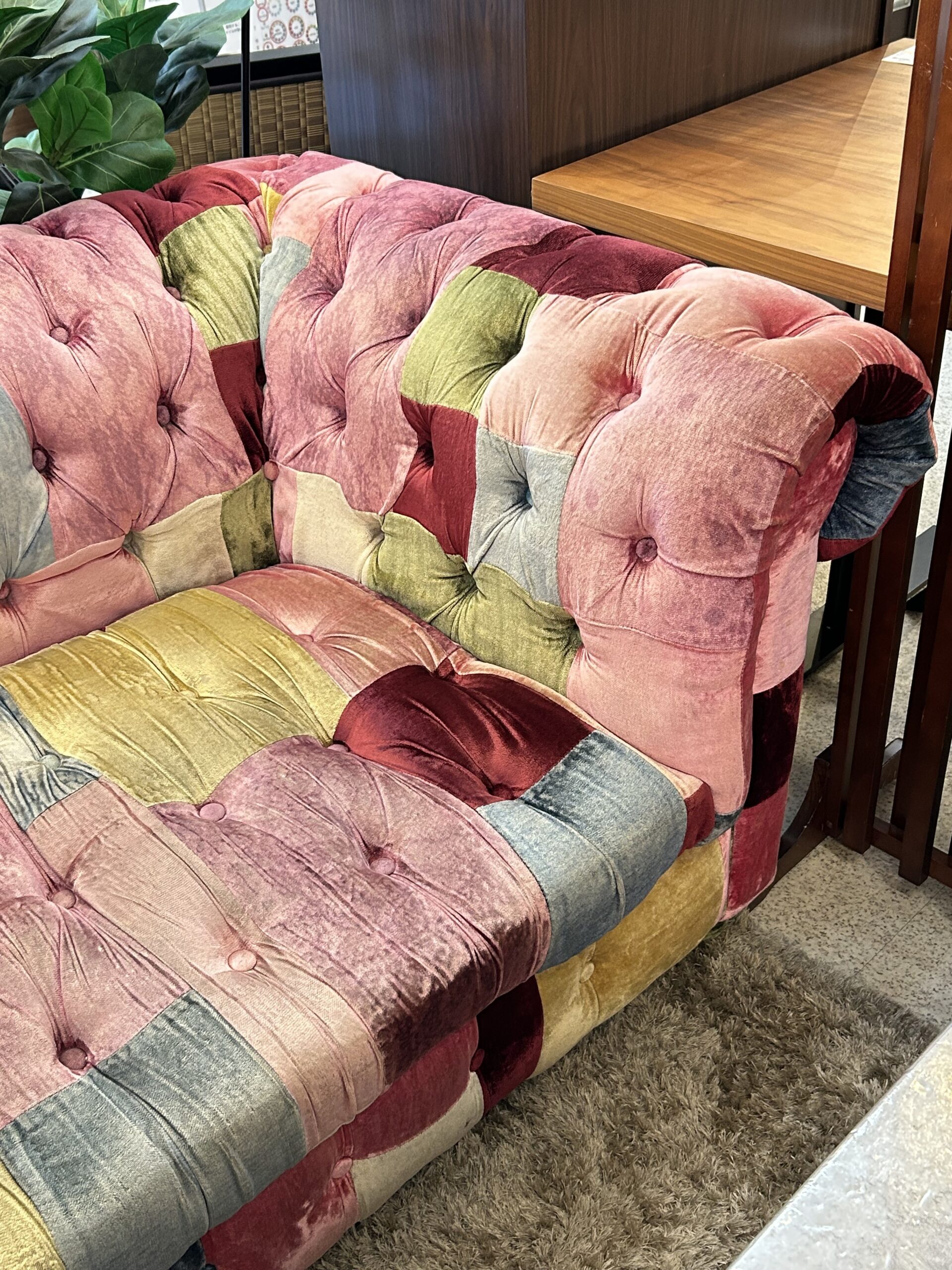 【中古】パッチワーク×チェスターフィールドデザインが特徴のソファ チェア スツール。インテリアの主役に◎