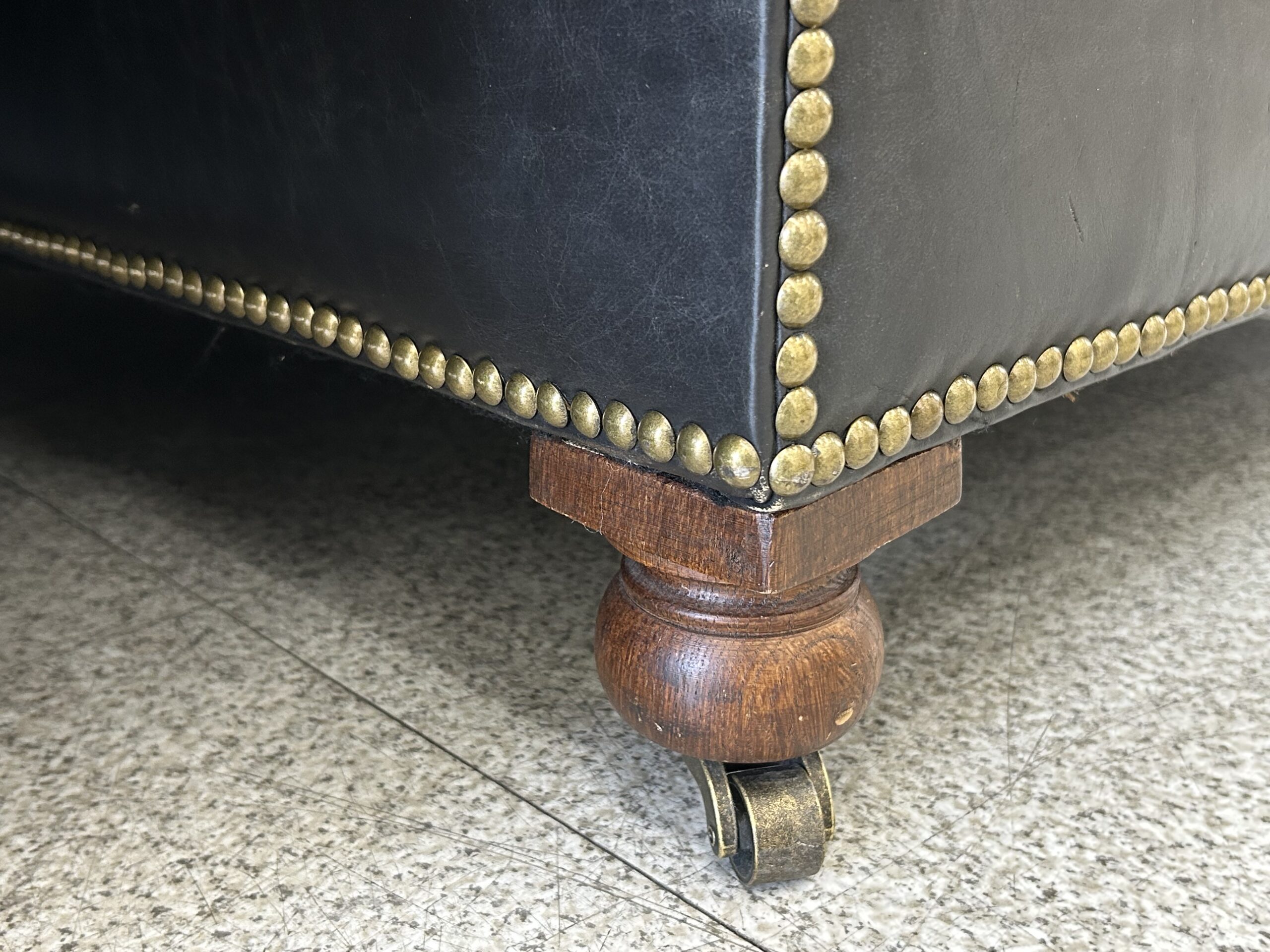 深いボタン留め、鋲飾り、丸みのあるアームなどクラシックな造形が特徴です。