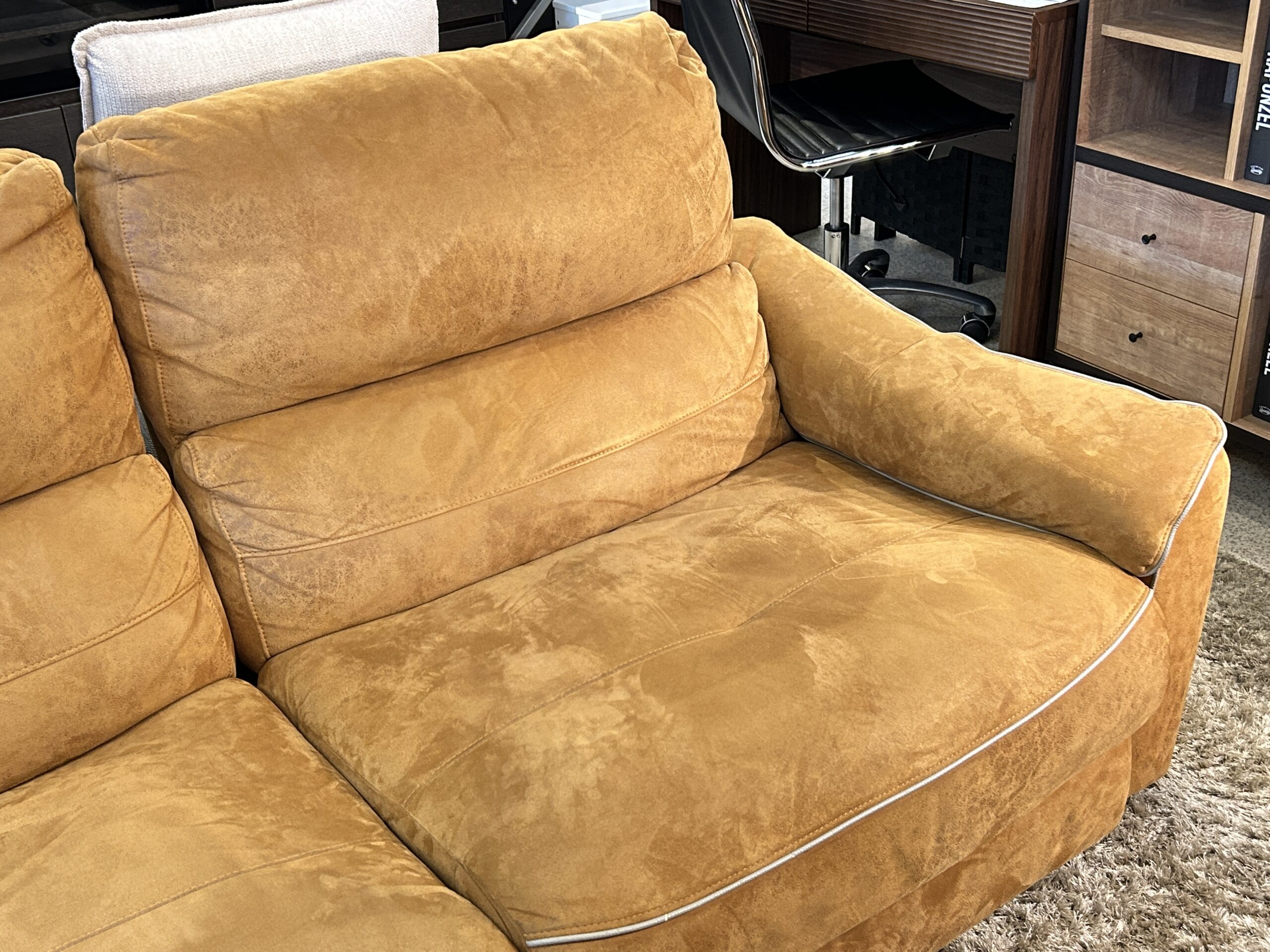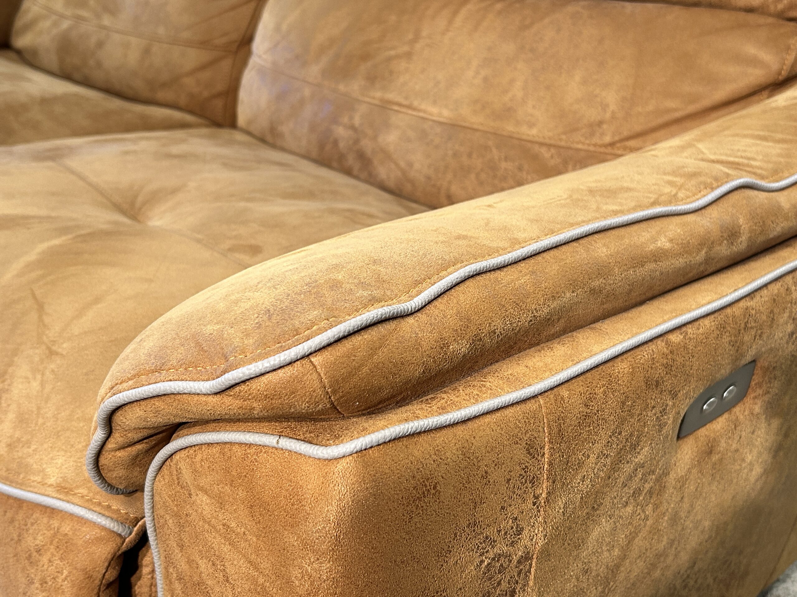 本革のような質感の高耐久ファブリック”レザーテックス”を使用した電動リクライニングソファ。