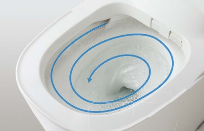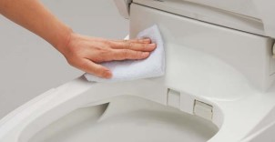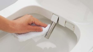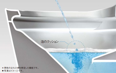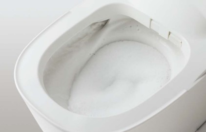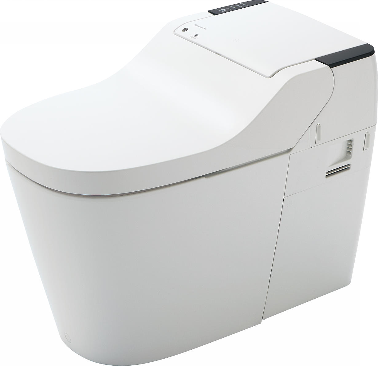 有機ガラス系新素材で汚れがつきにくい、全自動おそうじ機能付きの温水洗浄一体型トイレ「アラウーノ」。