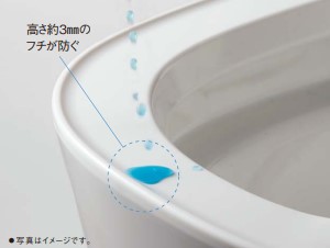 フチの立ち上がりが外に垂れ出るのをおさえる。