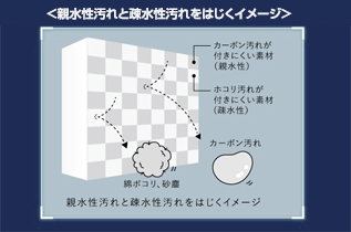 親水性素材と疎水性素材で汚れが付きにくい表面をつくる特殊素材「デュアルバリアマテリアル」を採用。