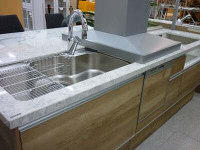 システムキッチン 換気扇 ビルトイン食洗器 センサー式水栓 油はねガード モデルルーム展示品 ウッド 大理石天板 セルフクロージング クリナップ 買取しました!