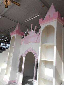 お城の形をした外観に、階段、滑り台、ロフト、本棚がついています。