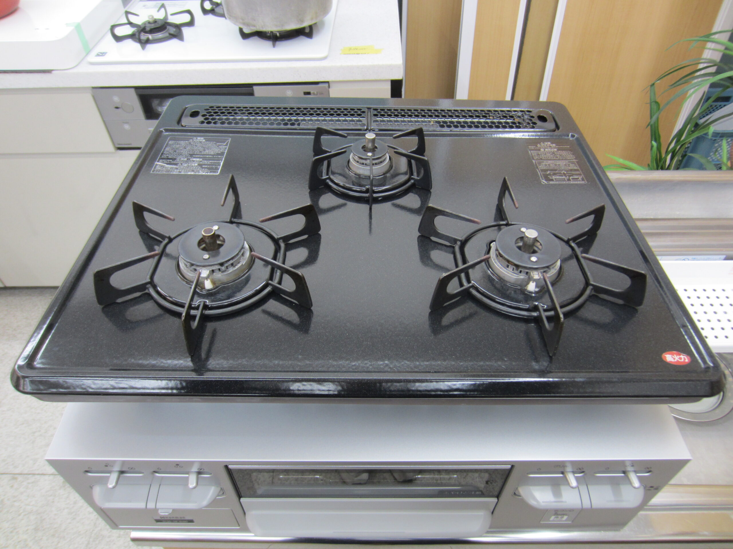 中古 3口 ホーロートップ 水無し魚焼きグリル Siセンサー
