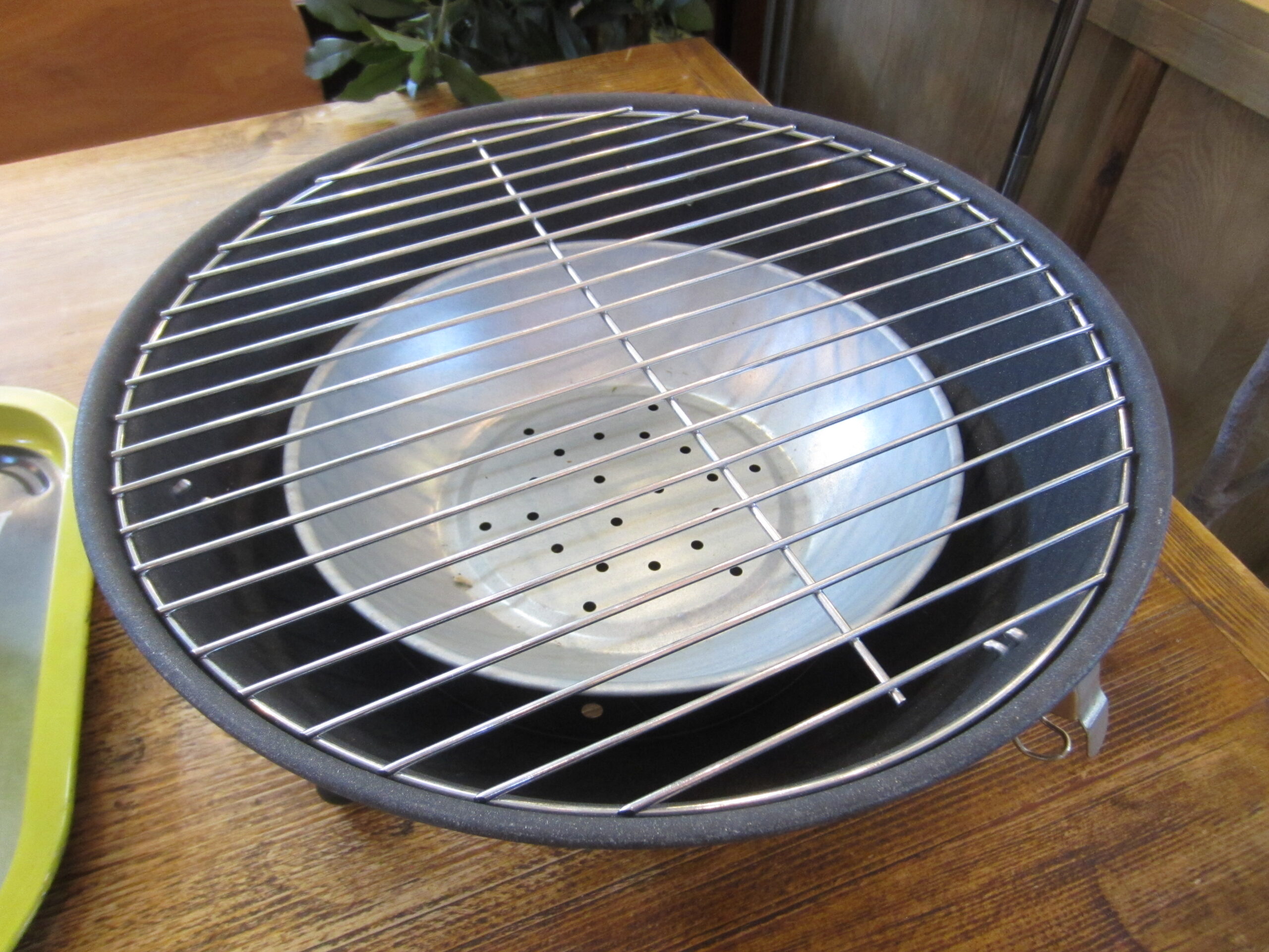 中のアルミトレイに炭を入れて着火し、付属の網の上で、具材を焼くことができます。