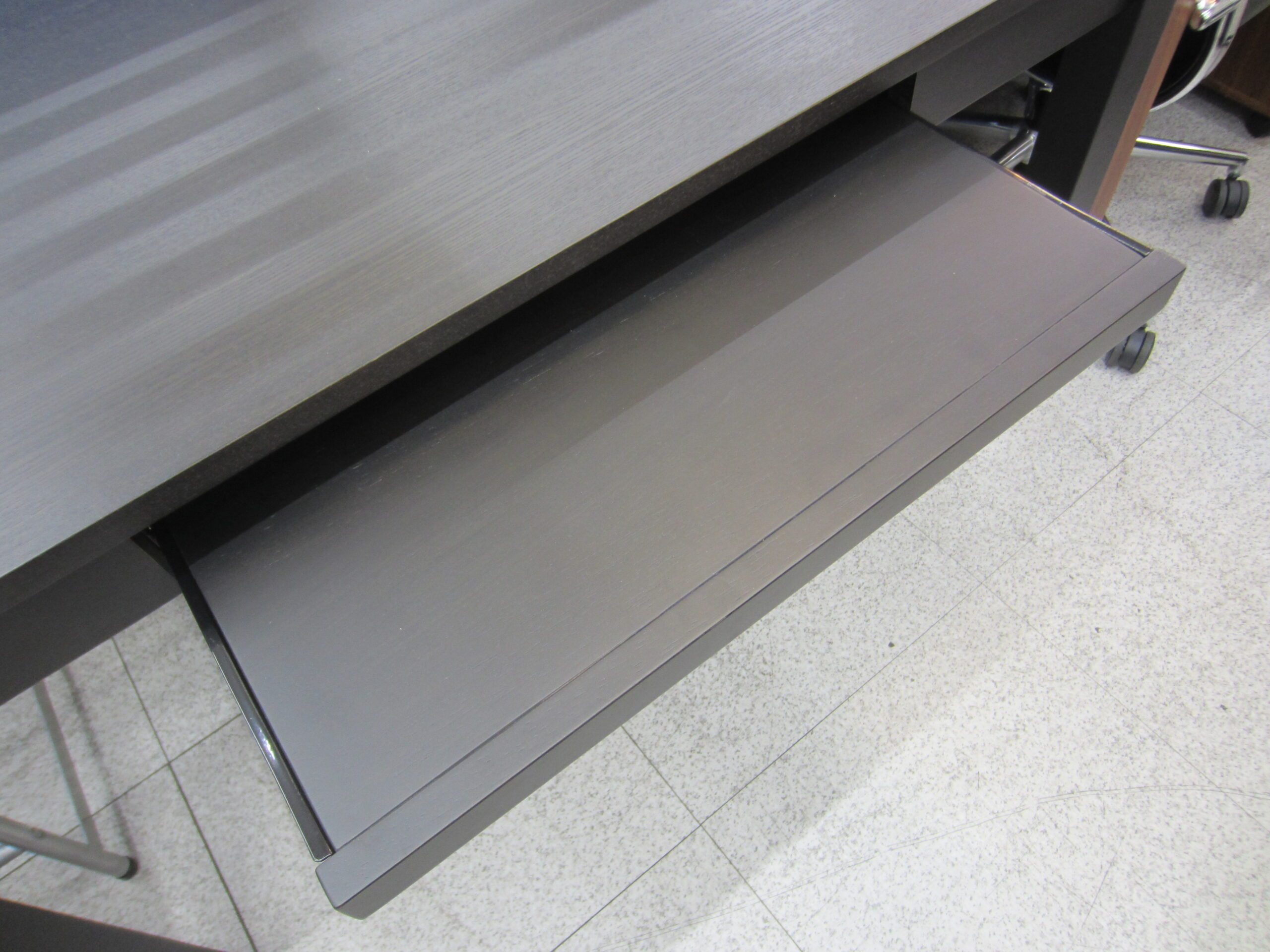 中央のスライド式トレーはキーボードやマウスの収納ができますので、