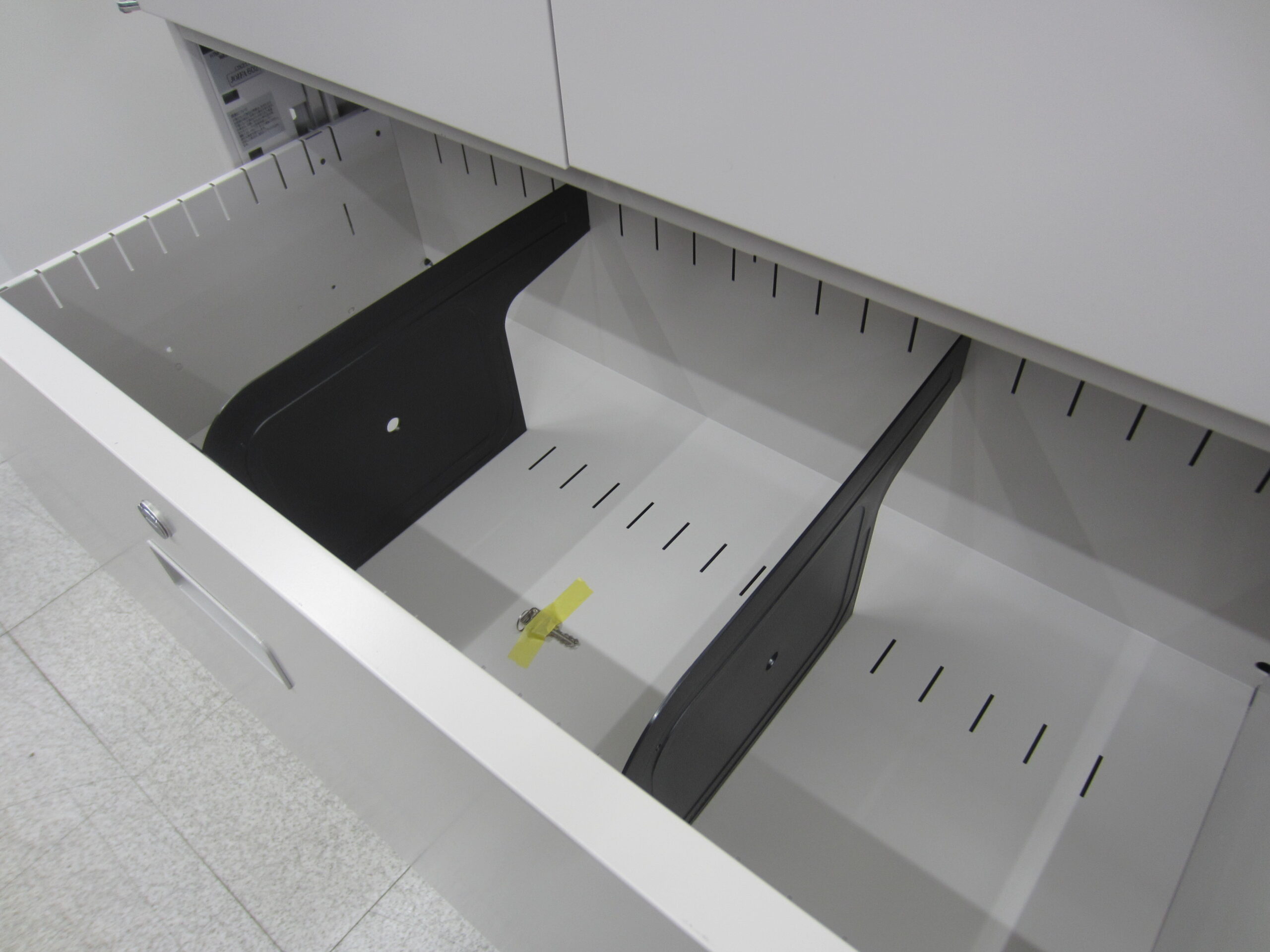 両開き扉タイプ、引出しタイプ共に地震の振動などによる引出しの不慮の開閉を防止するラッチ機構を標準装備されています。