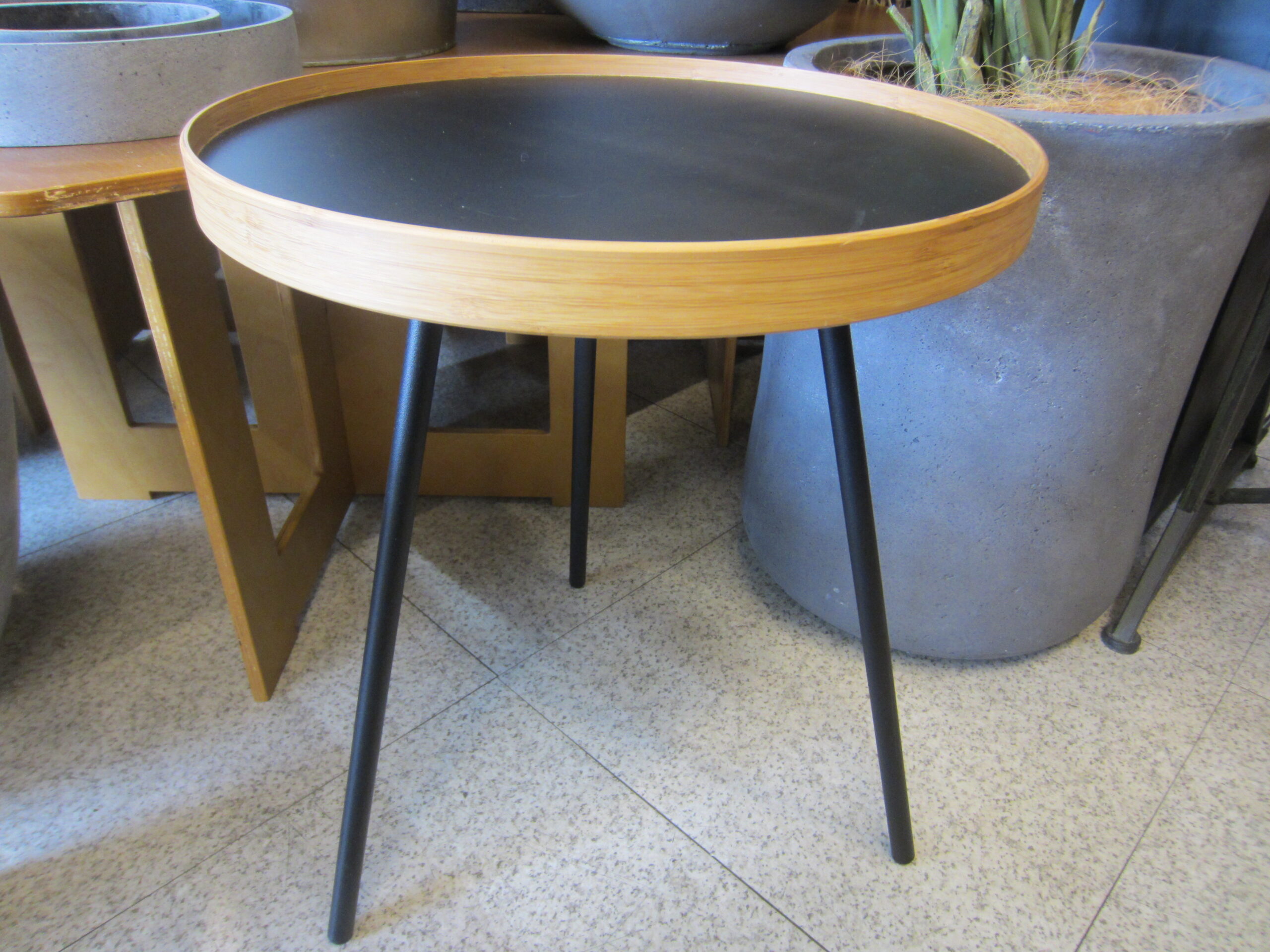 スチール製の脚にトレイを載せてあるサイドテーブルです。