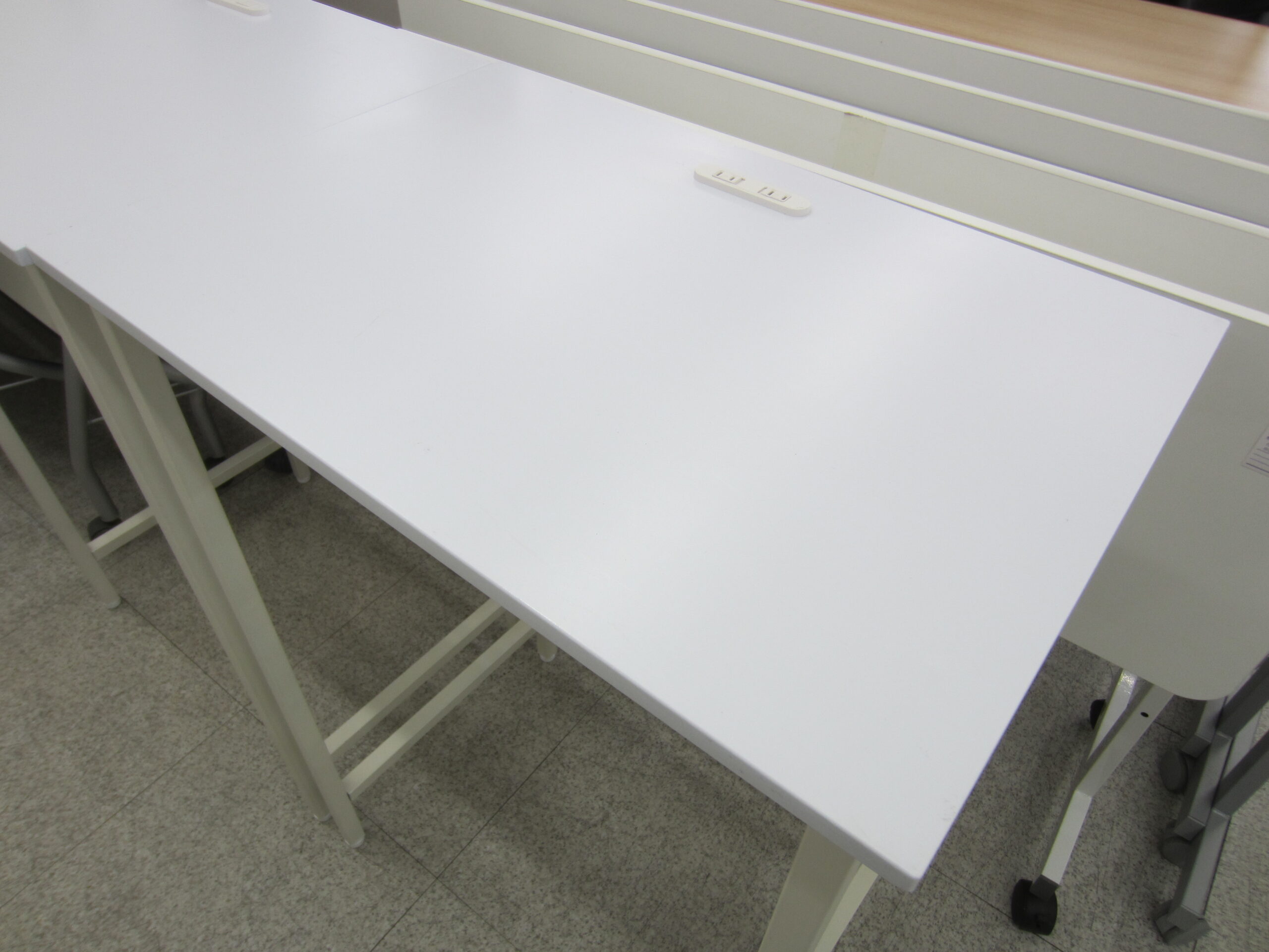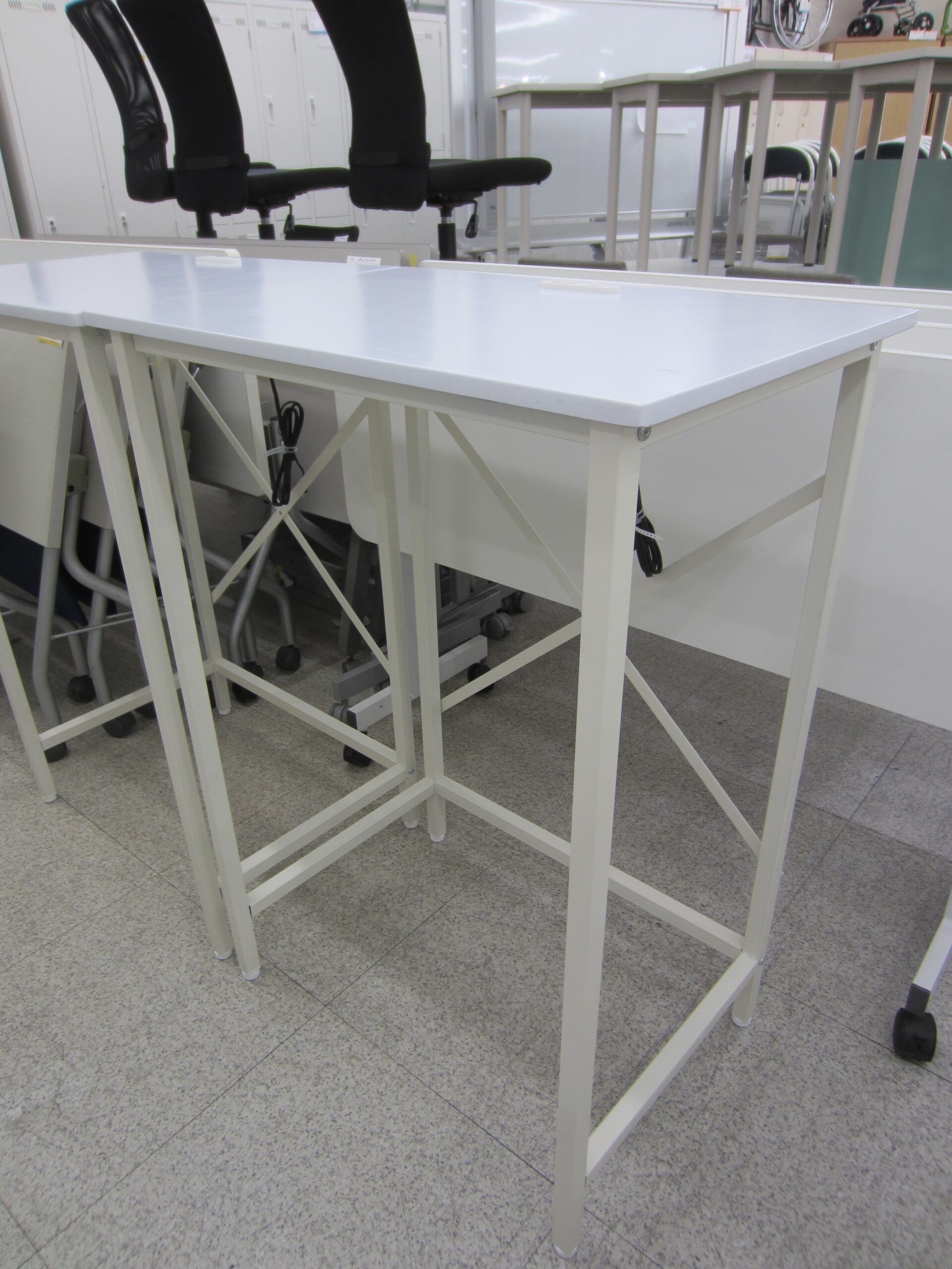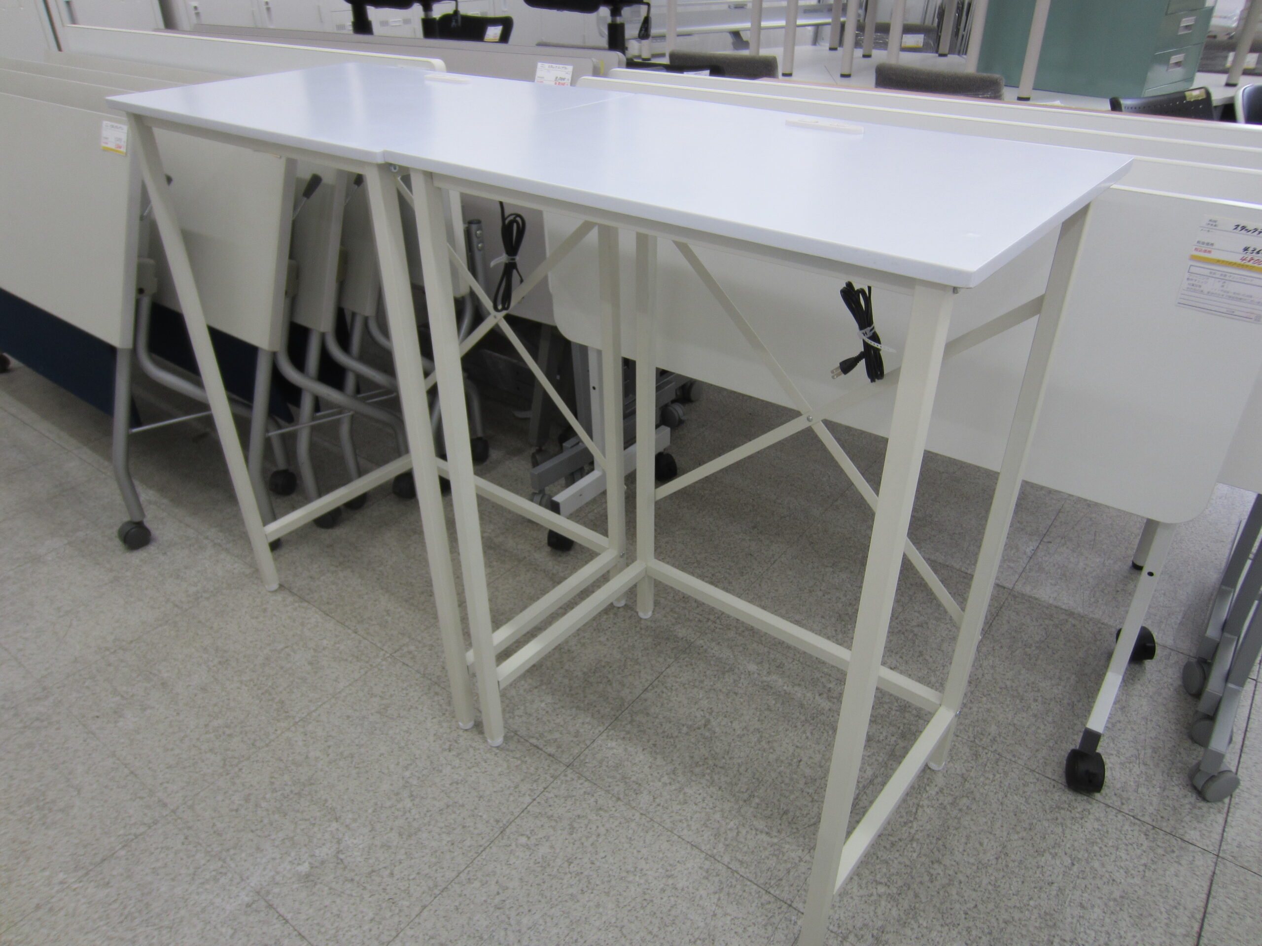 立ったままの姿勢で作業がきる、コンセント付きのカウンターデスクです。