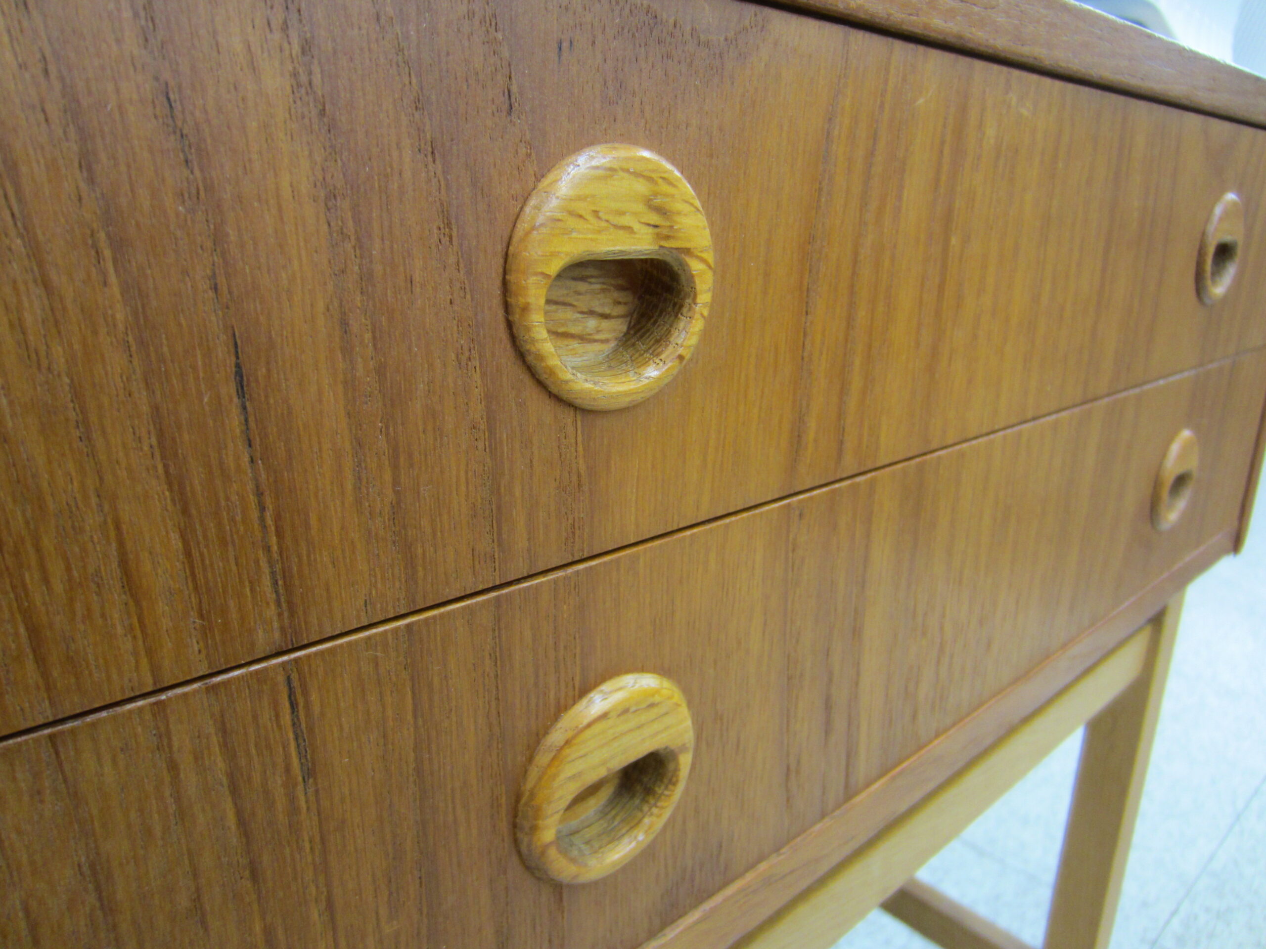 1900年代ミッドセンチュリー期にスウェーデンで製造された、小ぶりなサイズの2段の引き出し付きチェスト。