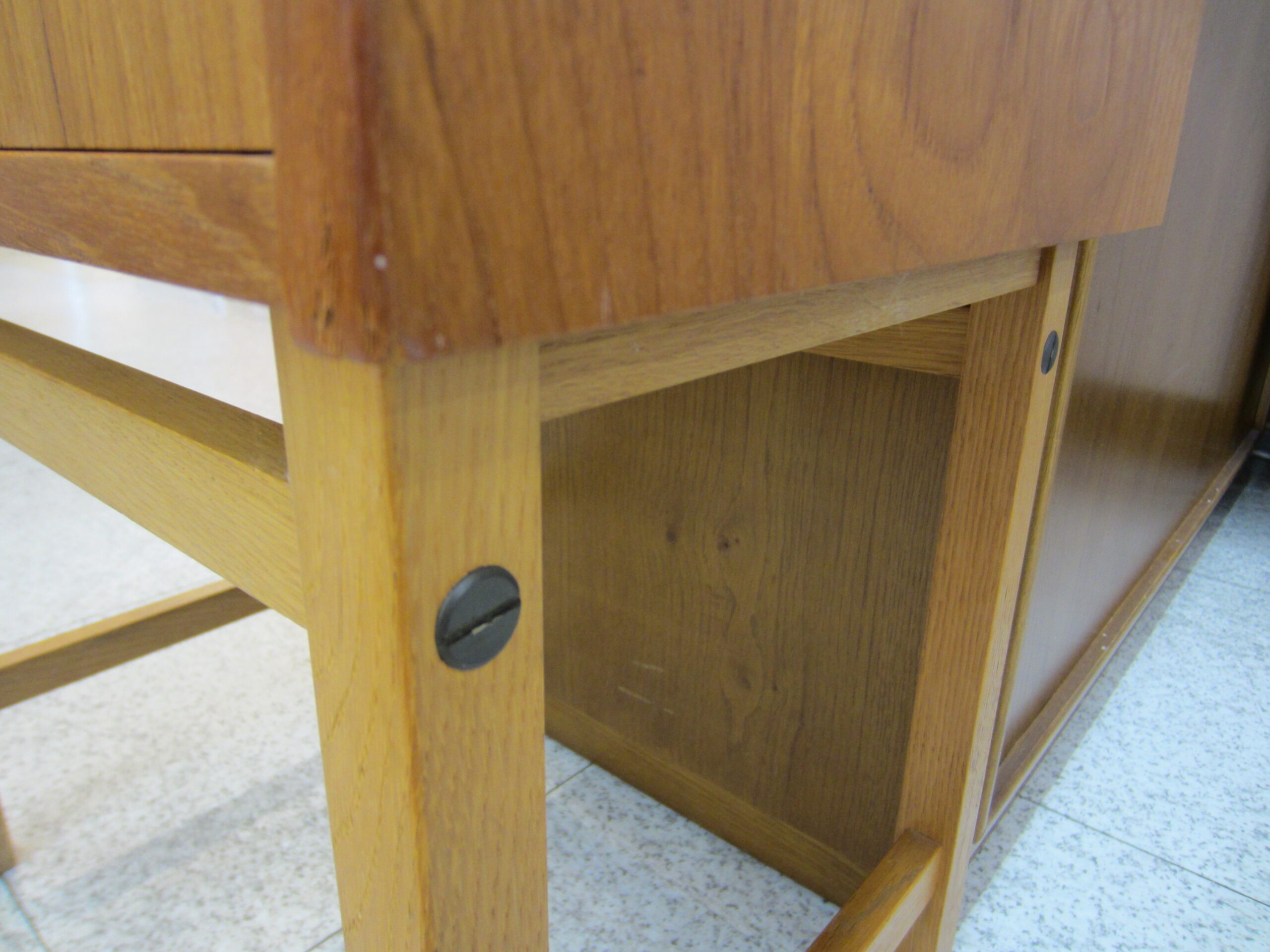 本体には良質なチーク材が使用されています。脚部にはナチュラルなオーク材が使用されており、本体との組み合わせもデザインポイントとなっています。