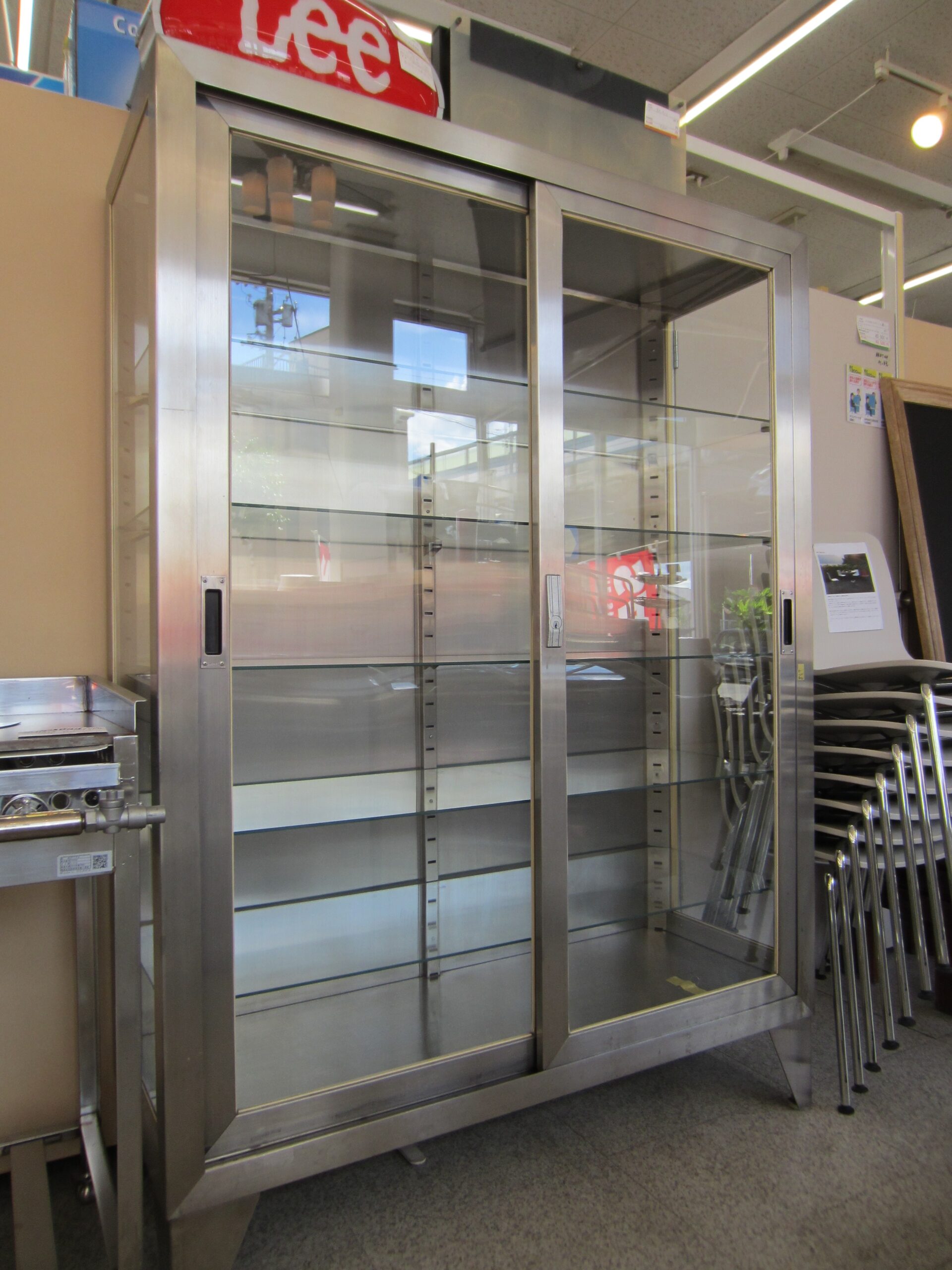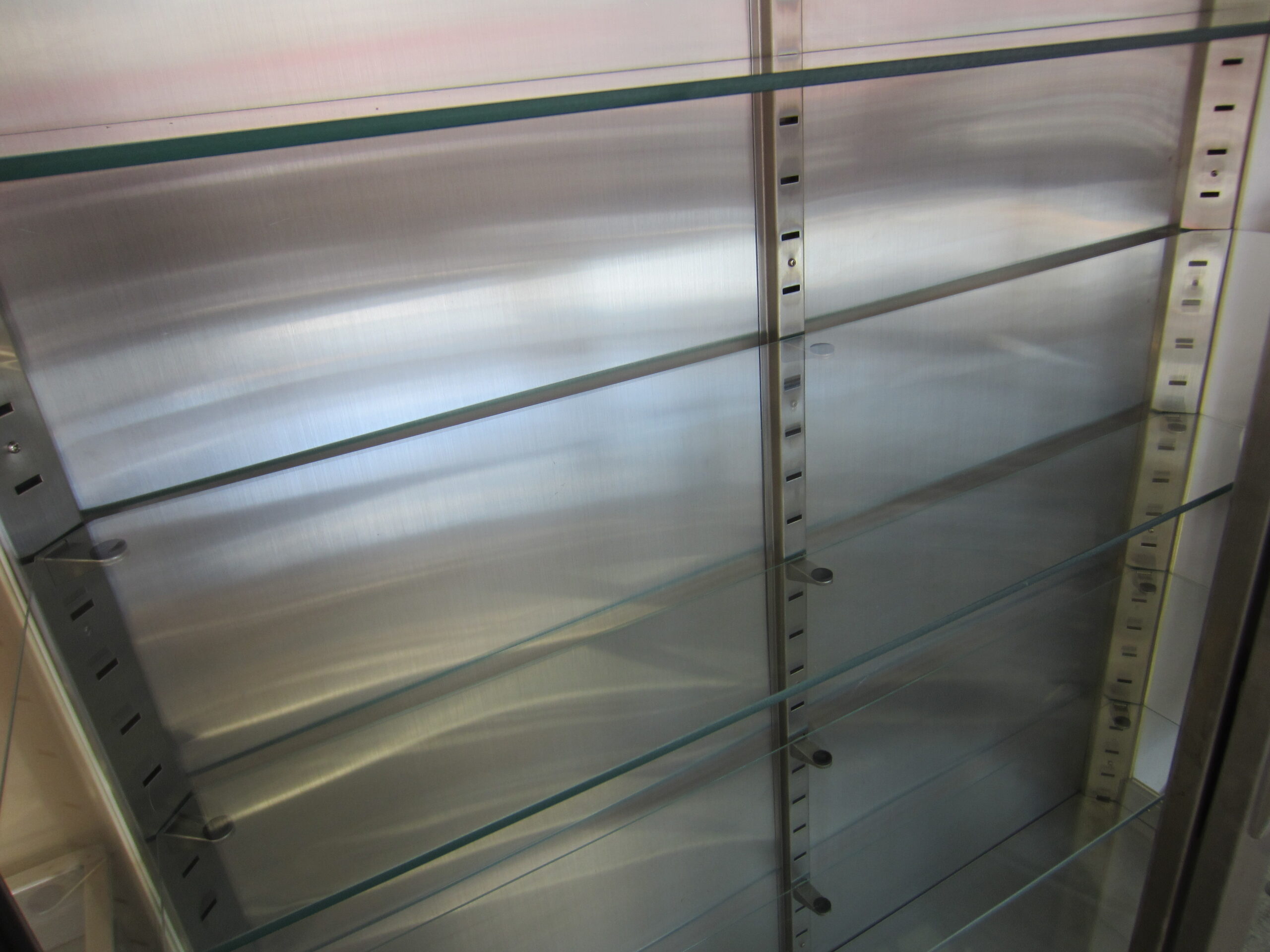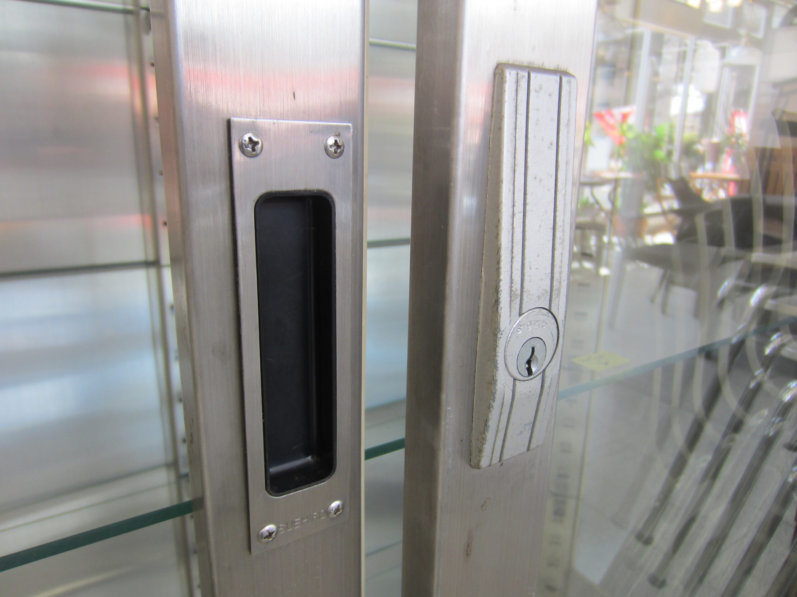 【中古品】シャープでモダンな印象のオールステンレス製のキャビネット。コレクションアイテムのディスプレイに!