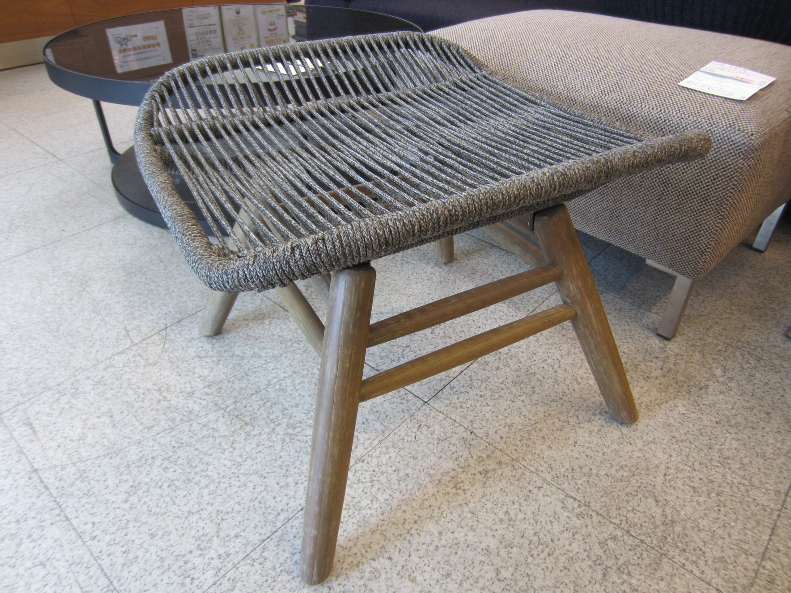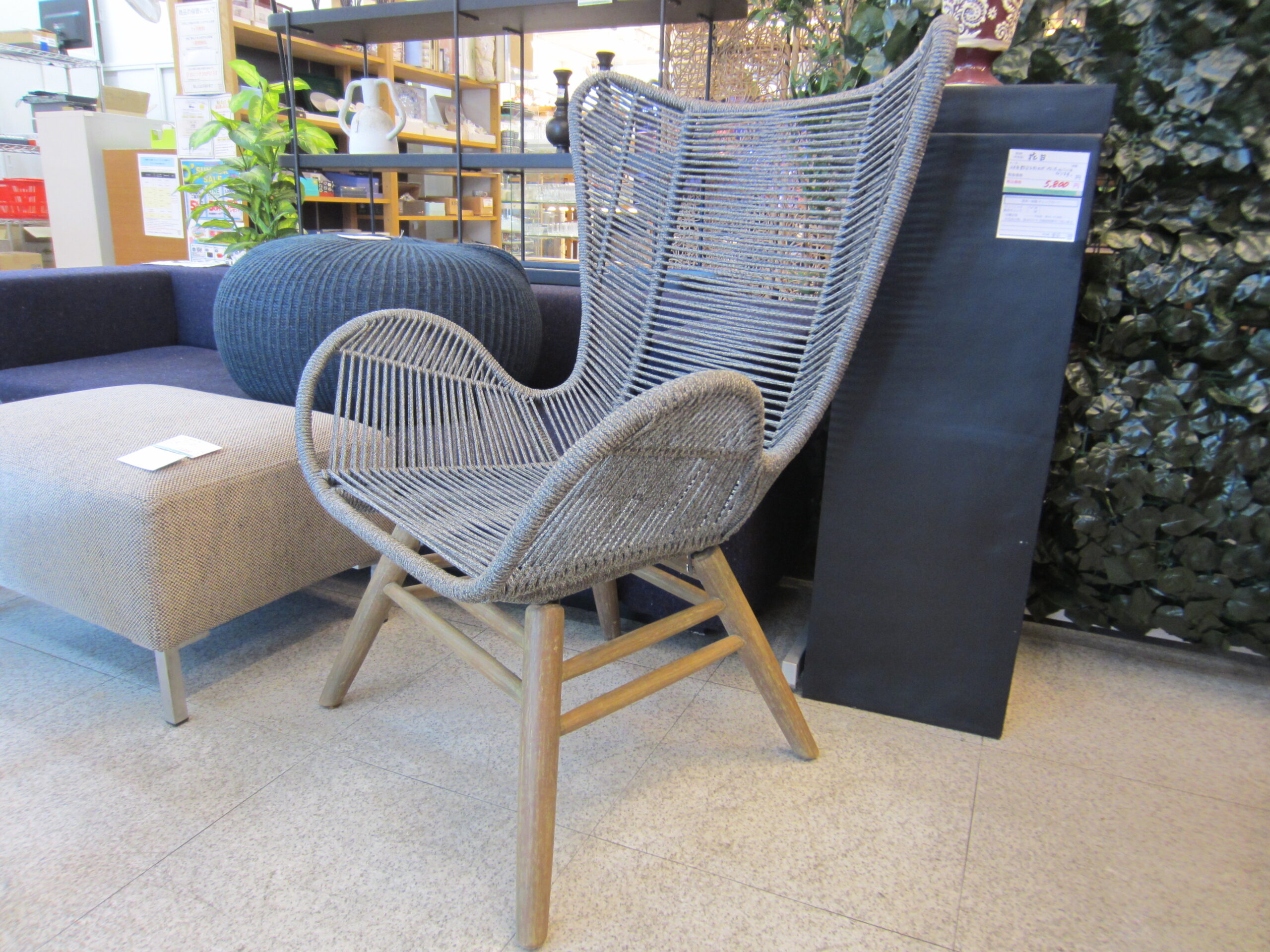 【モデルルーム展示品】ロープ素材と天然木の組み合わせが特徴的なガーデンチェア。屋外でも屋内でも使用可能◎