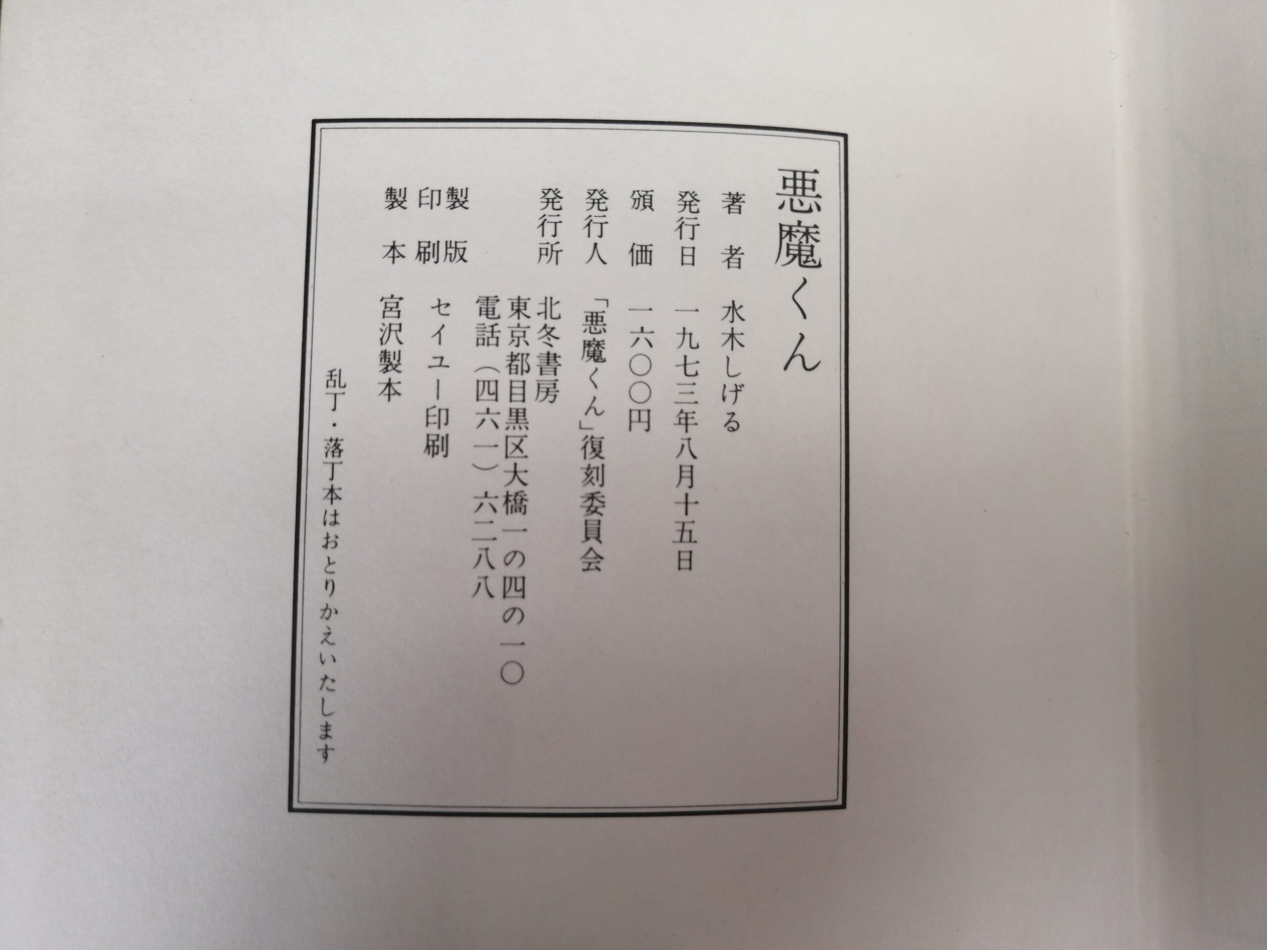 「悪魔くん」800部限定番号入り復刻本