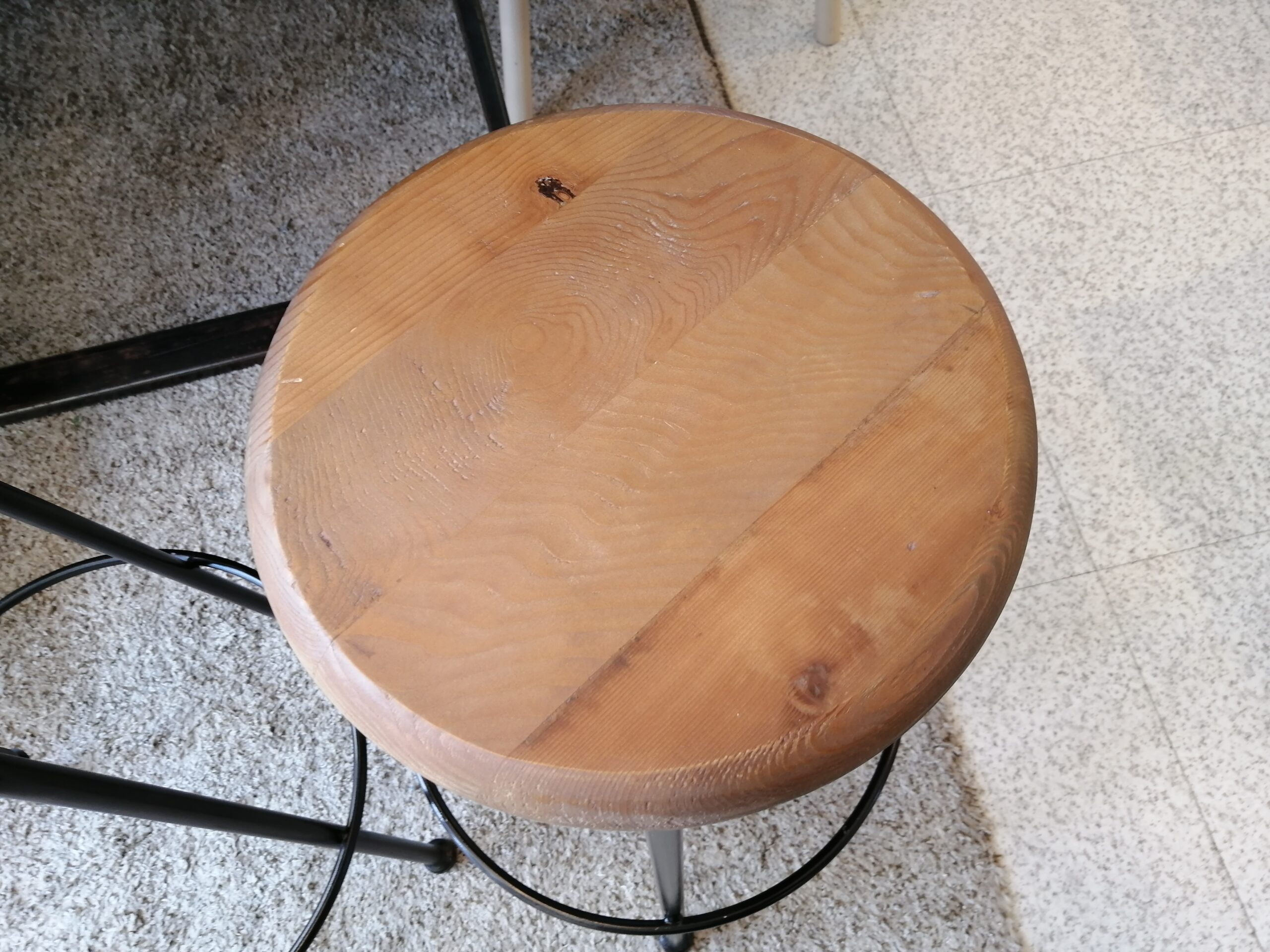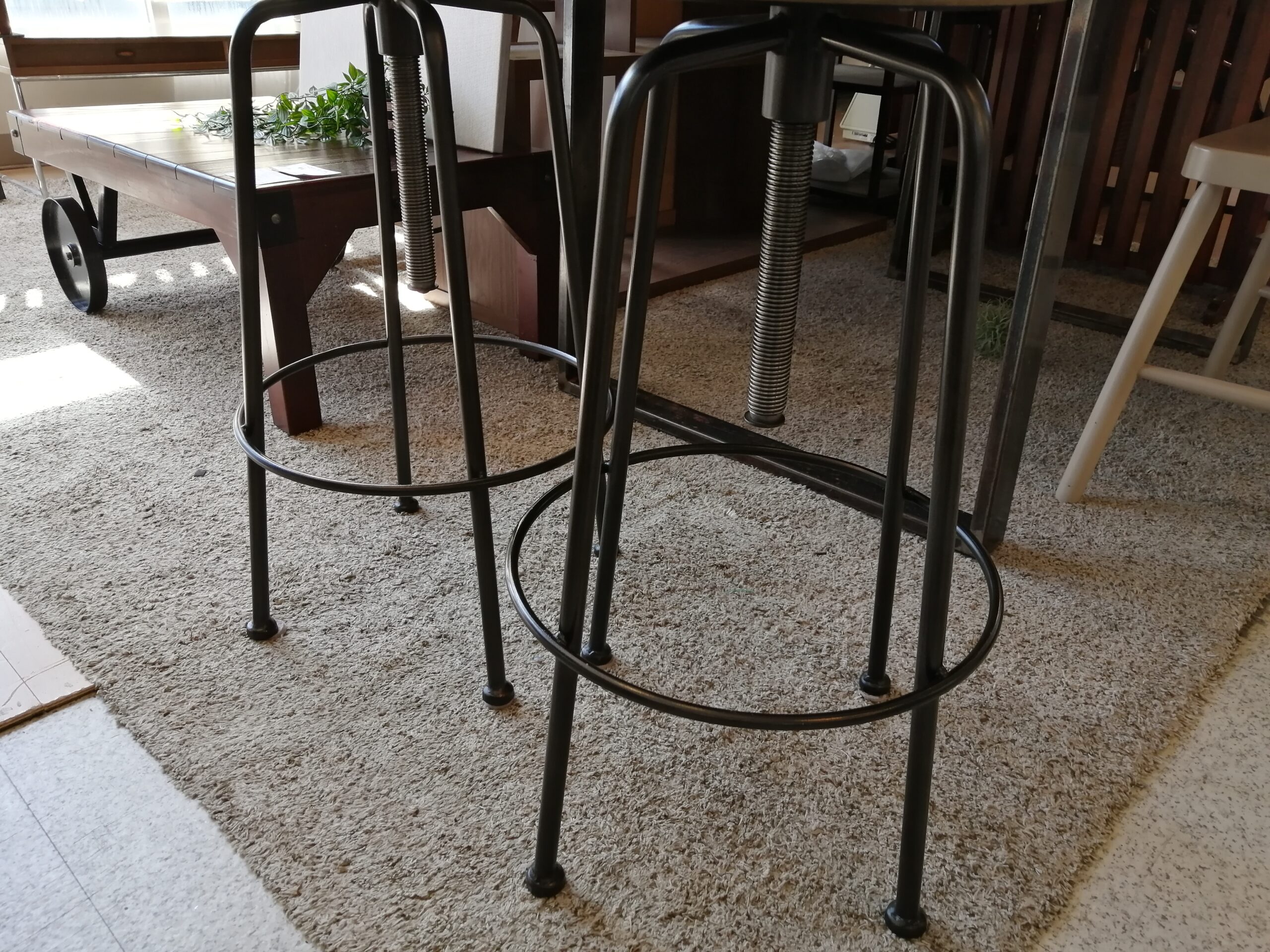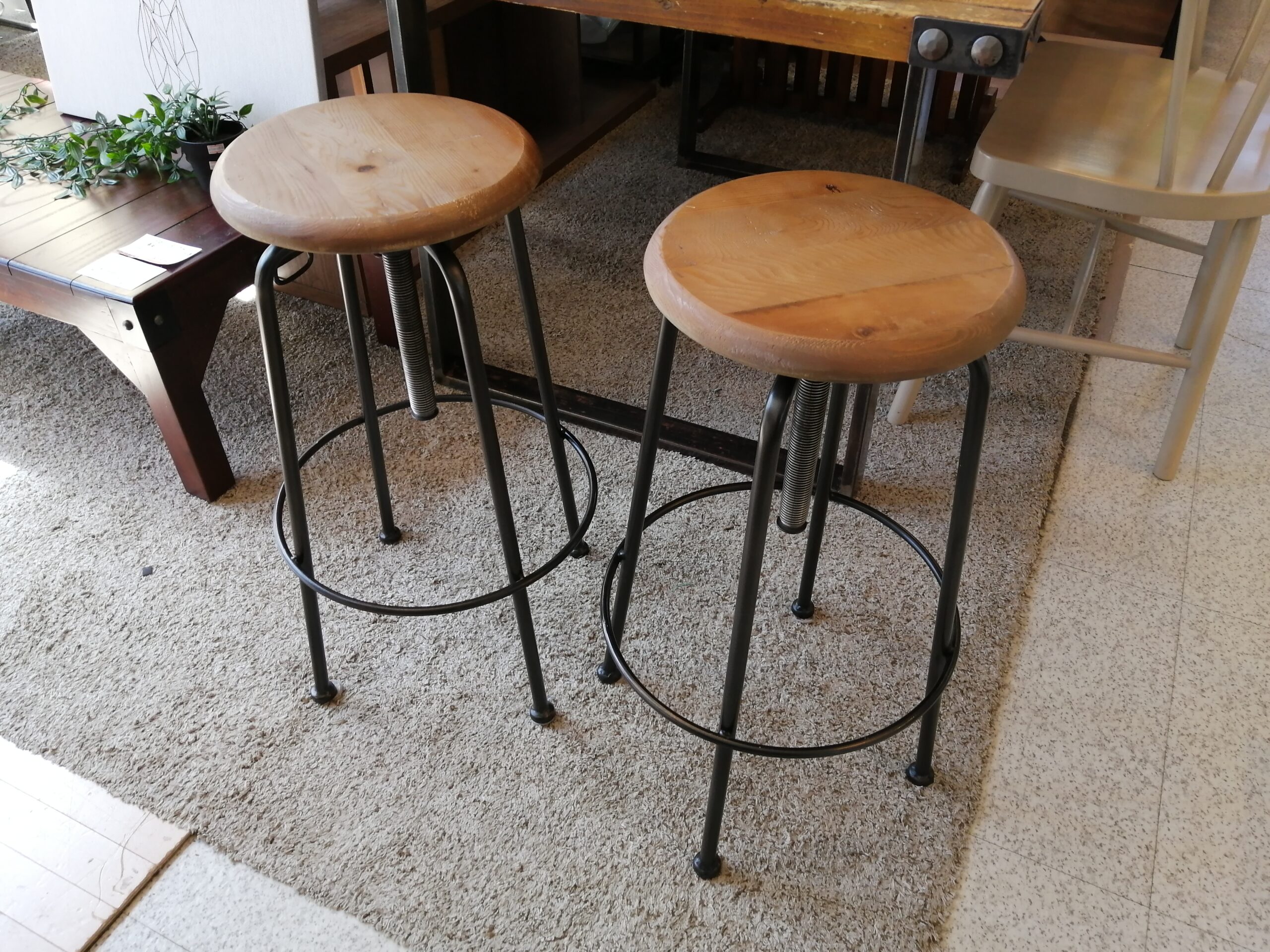 【中古品】アイアンと木を組み合わせたシンプルな昇降式スツール。インダストリアルテイストやヴィンテージスタイルと相性◎