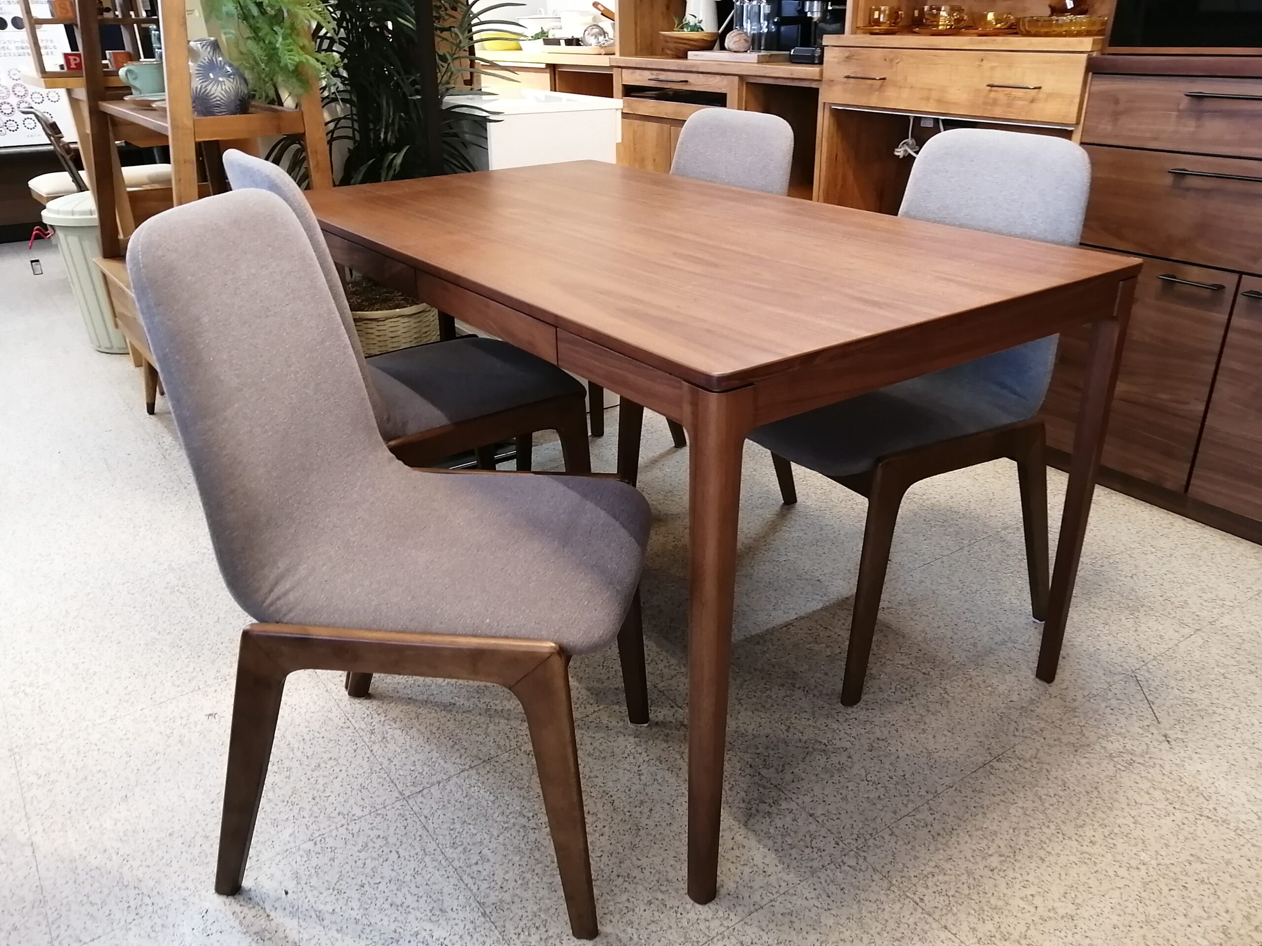 メーカーは別になりますが、同じウォールナット材が使用されているので落ち着いた雰囲気の統一感のある組み合わせになります。