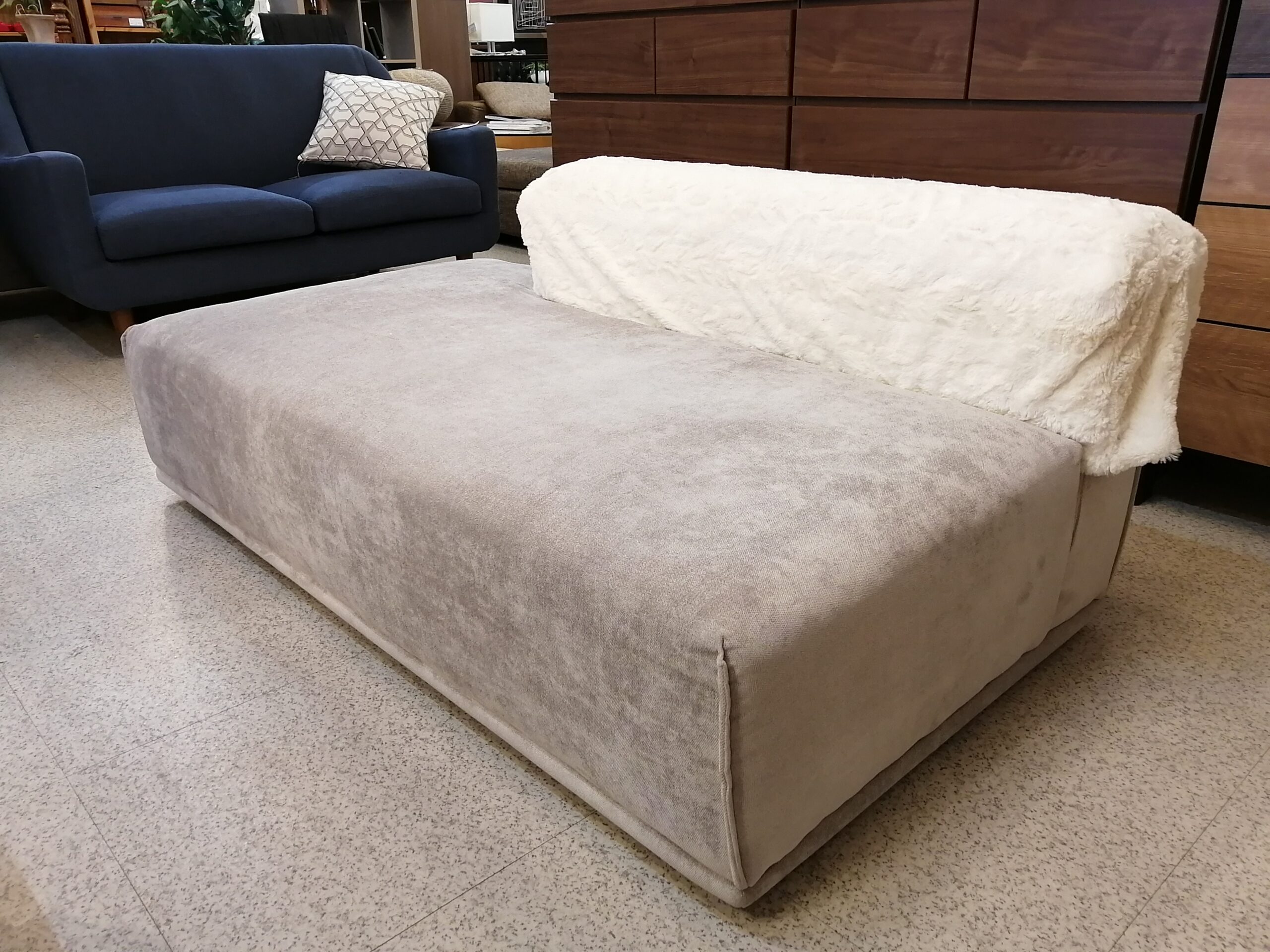 表面生地の下にフェザーの層と固めのウレタンフォームの層を設けることで、硬過ぎず柔らか過ぎない座り心地に仕上げています。