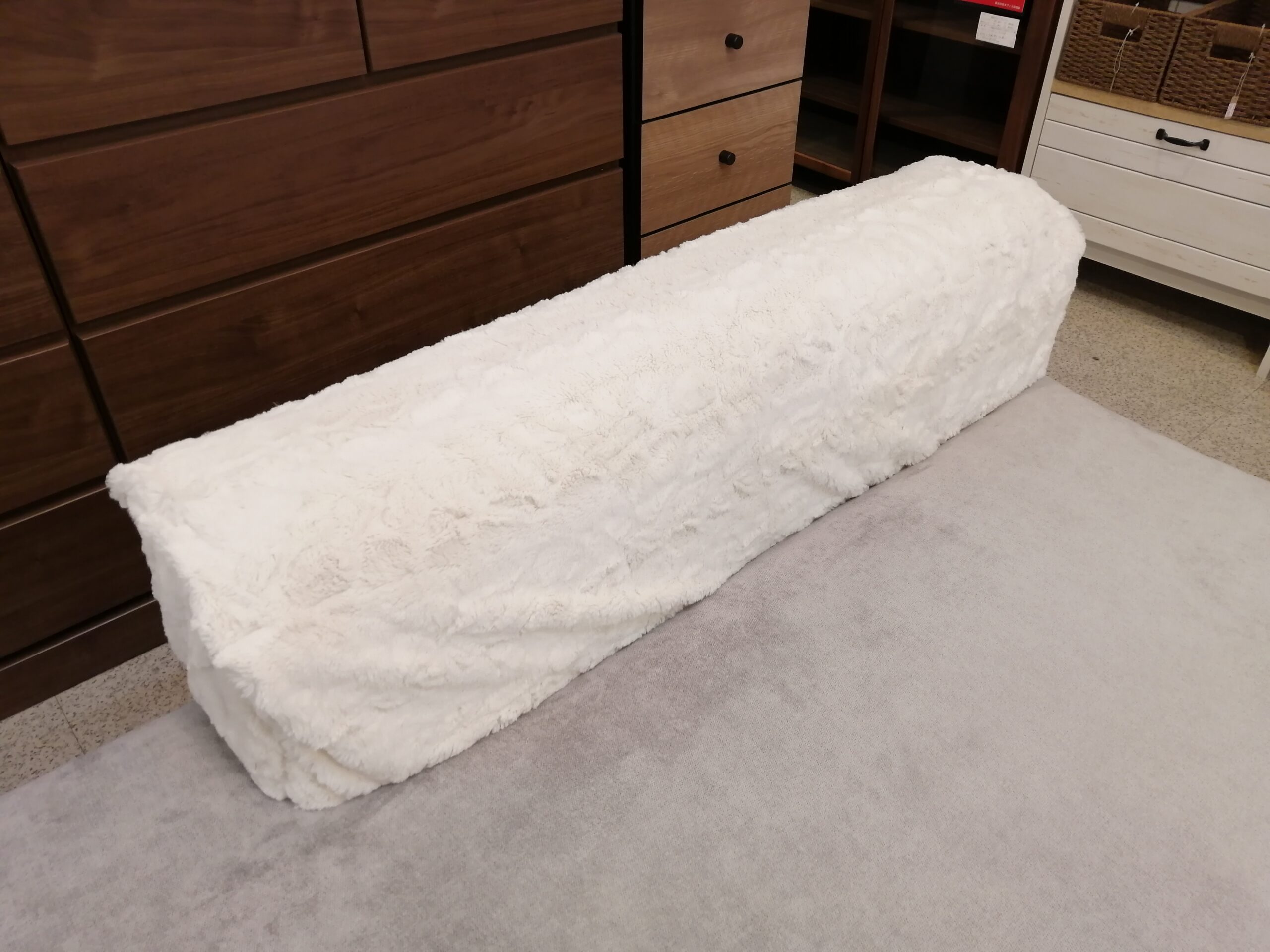 背もたれが毛足の長いカバーで覆われていてアクセントに◎