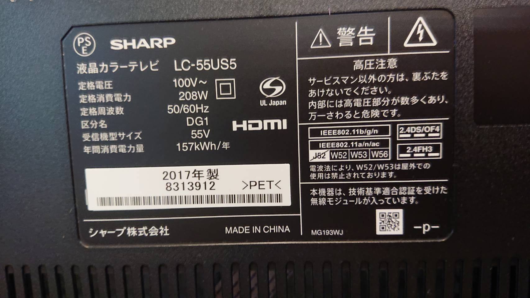 2023.10.06中古 シャープ 55インチ4K液晶テレビ LC-55US5 2017年製 買取しました!