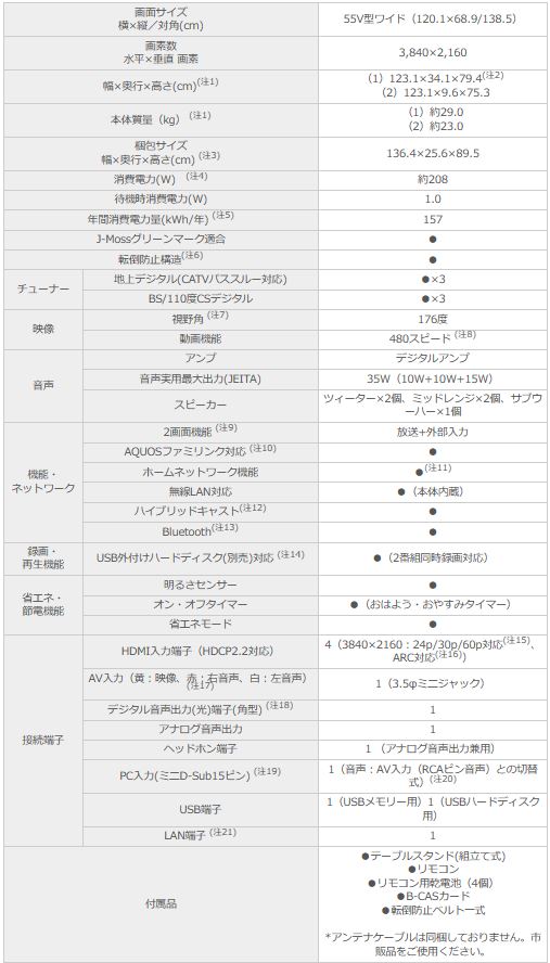 中古 シャープ 55インチ4K液晶テレビ LC-55US5 2017年製 大画面の4Kをお手軽に!
