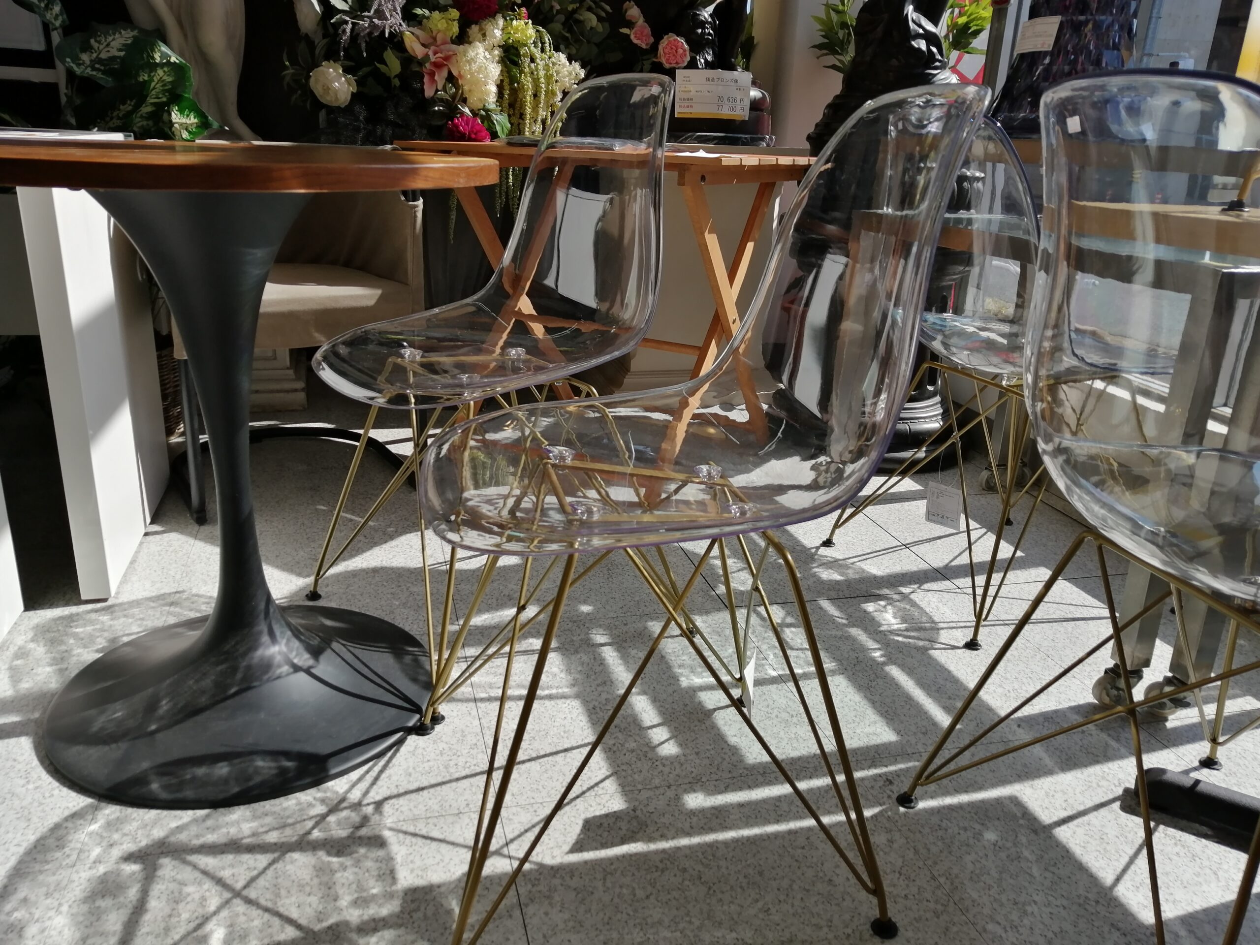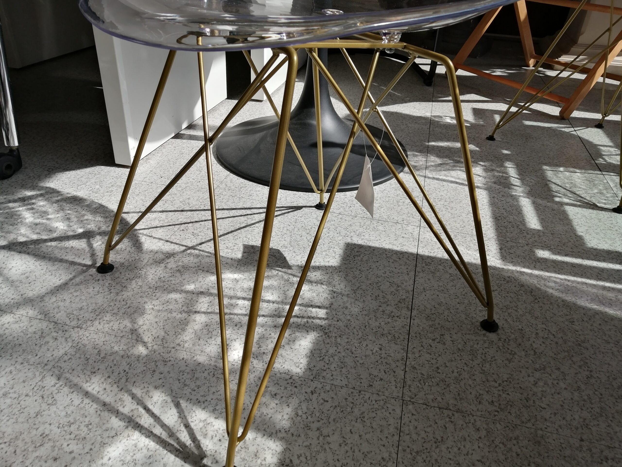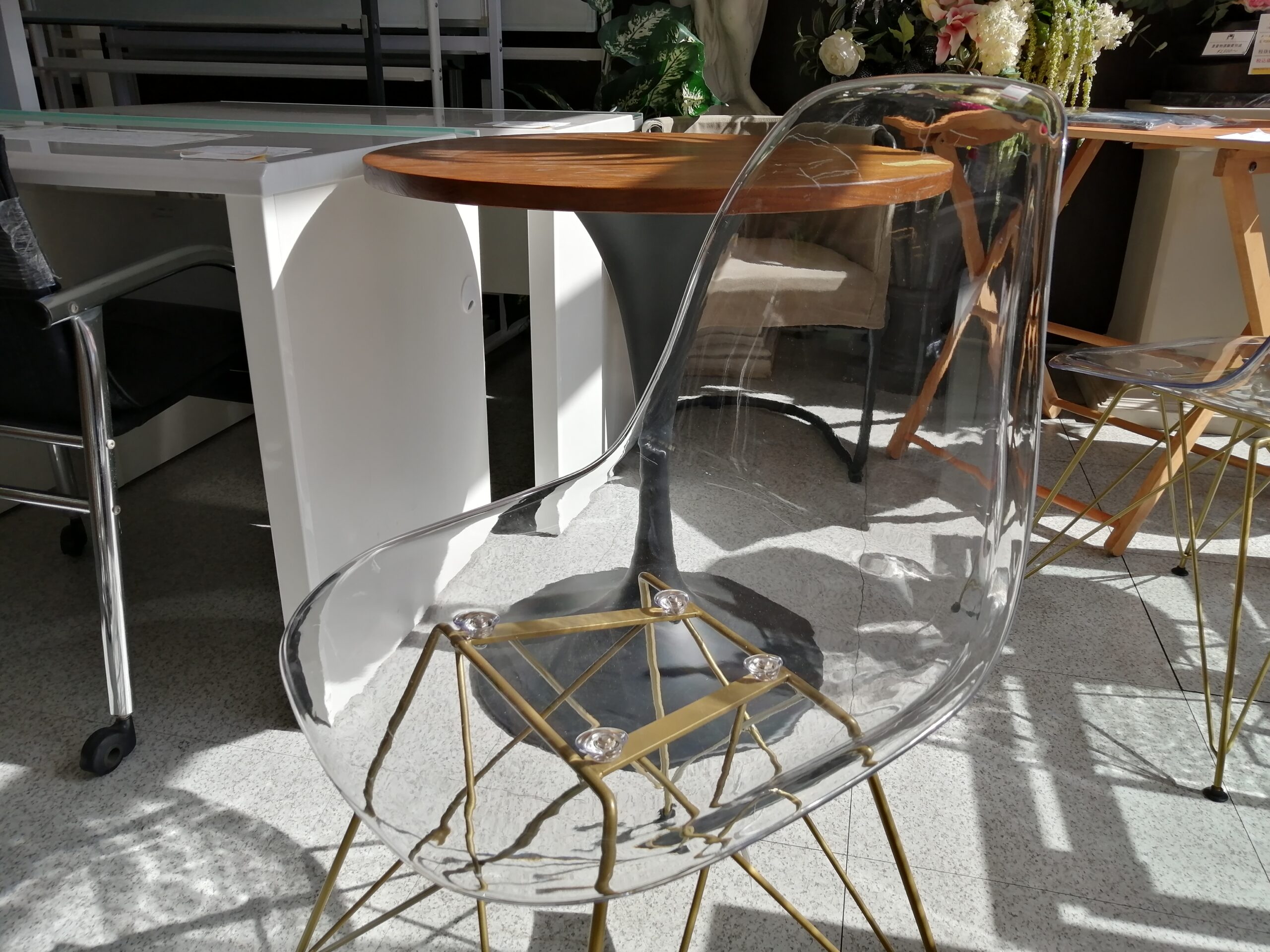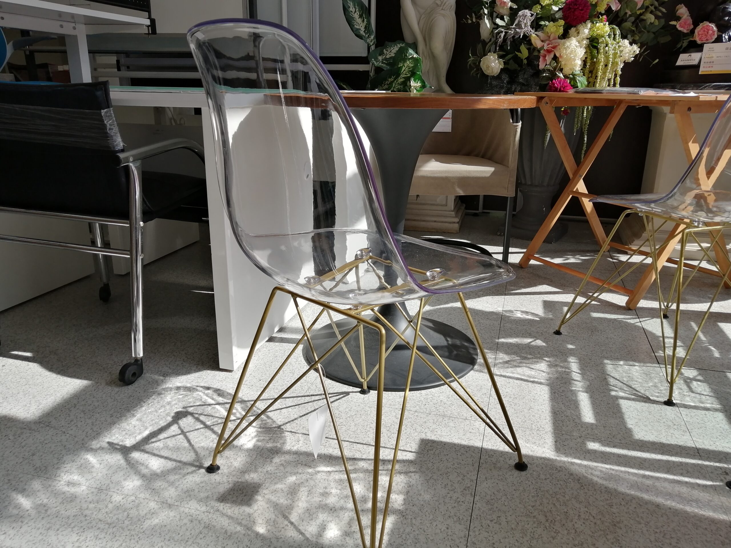 透明感のあるシェルと、ゴールドのメタリックな質感が美しいエッフェルベースが、スタイリッシュな雰囲気を醸し出すチェア。