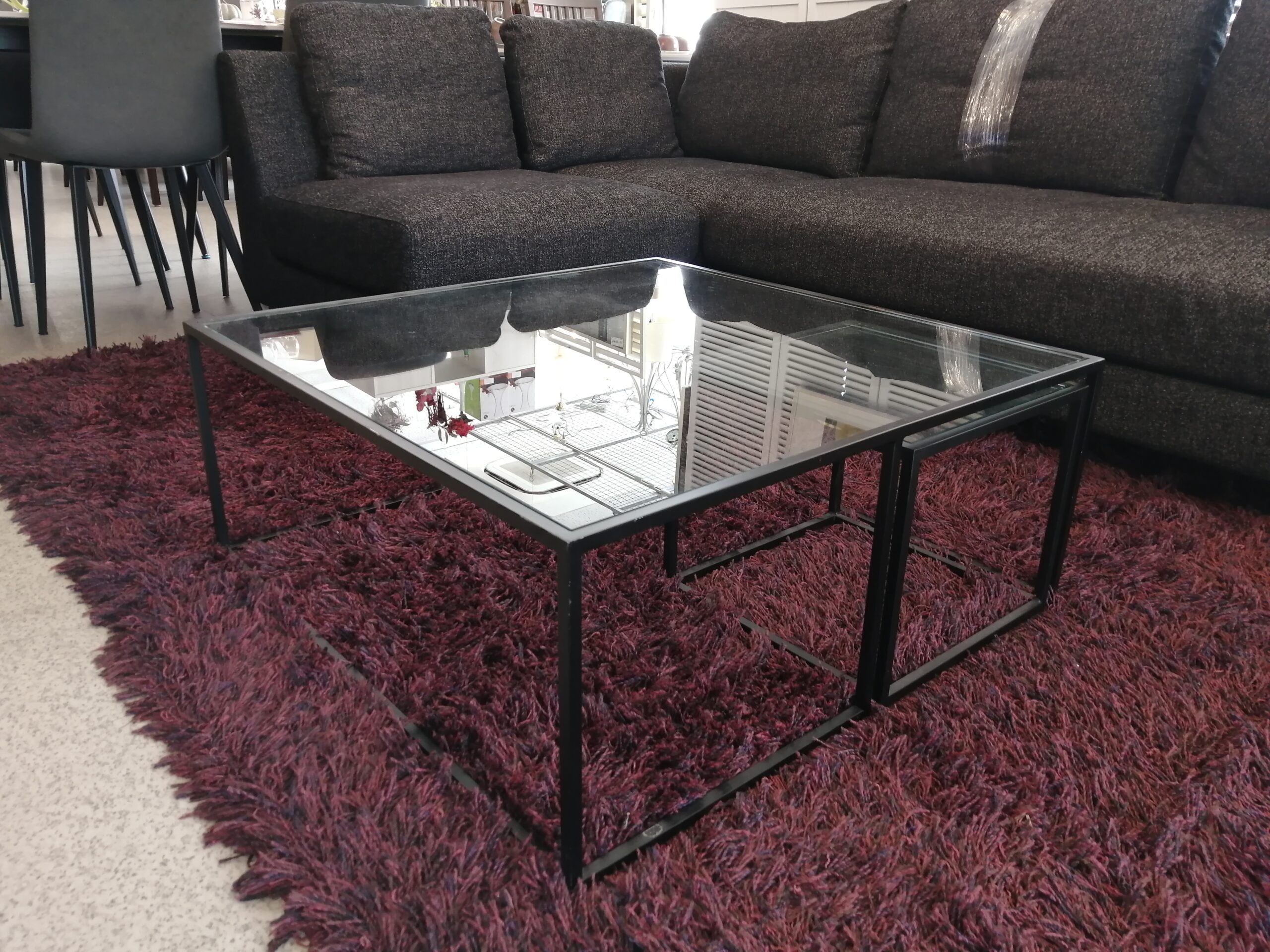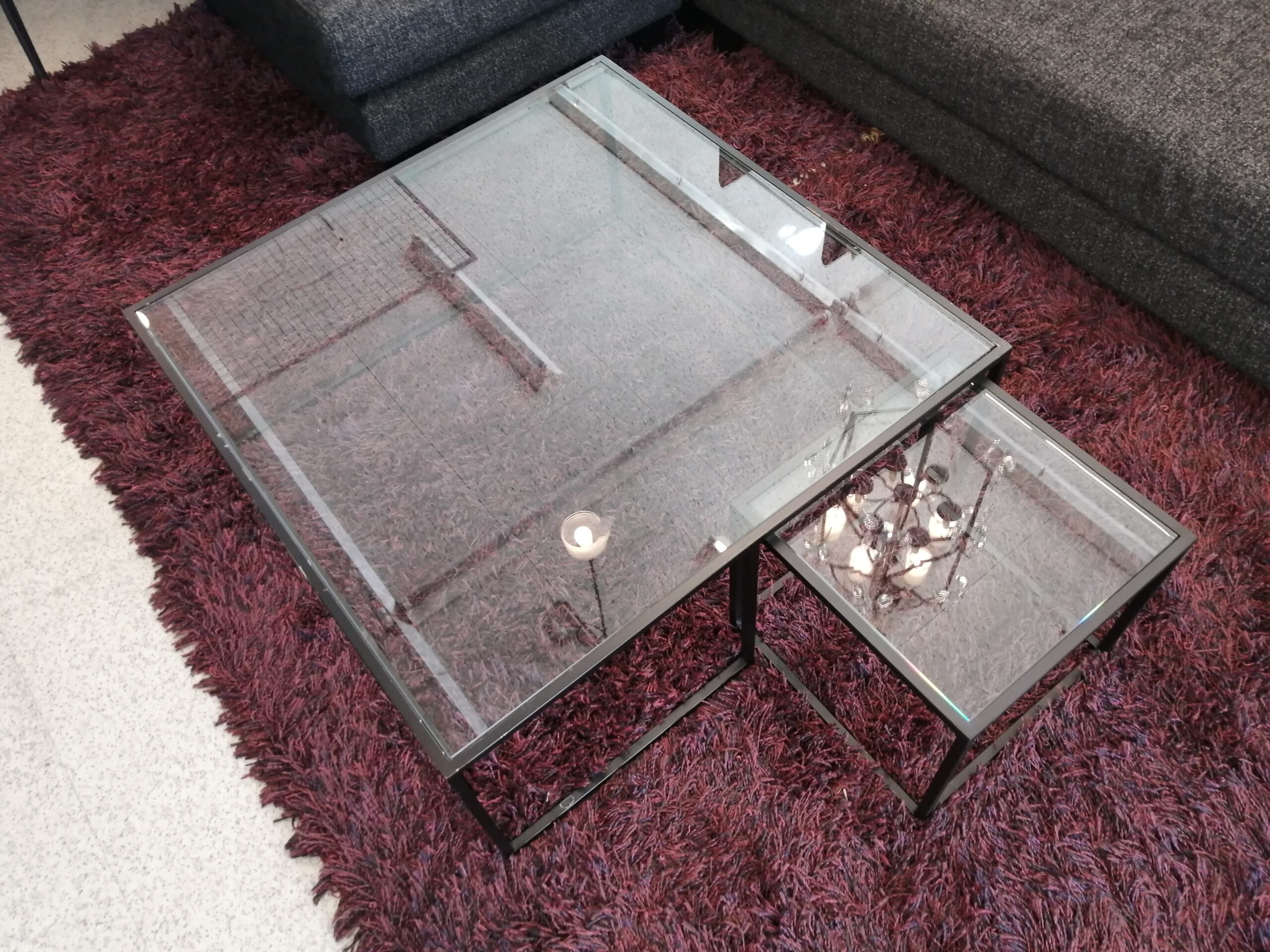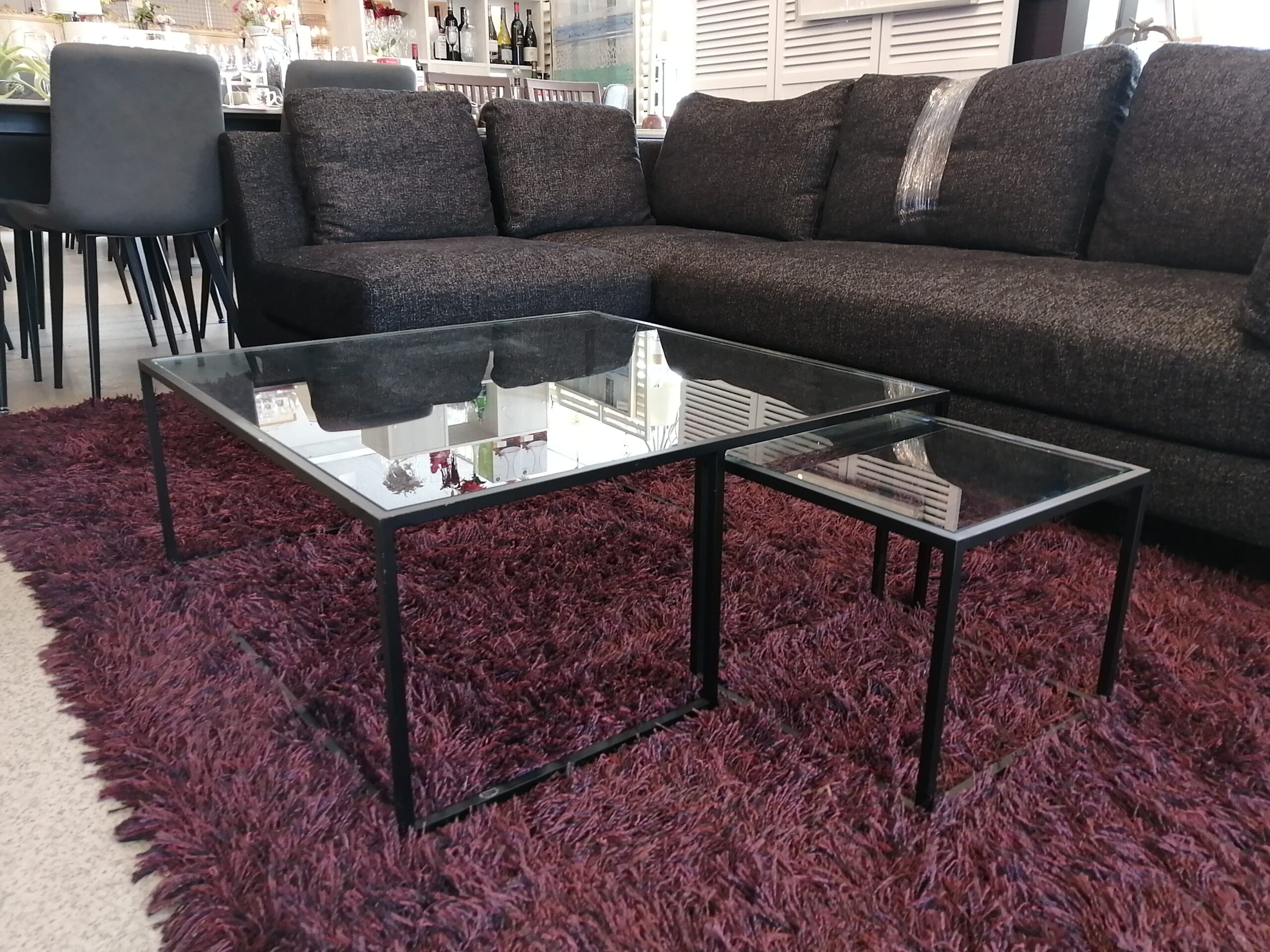 ガラステーブルとミニガラステーブルがセットになったコーヒーテーブル。