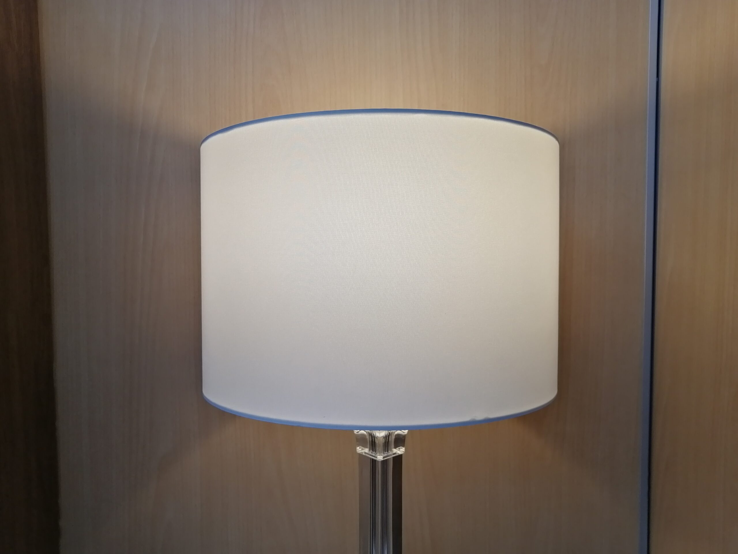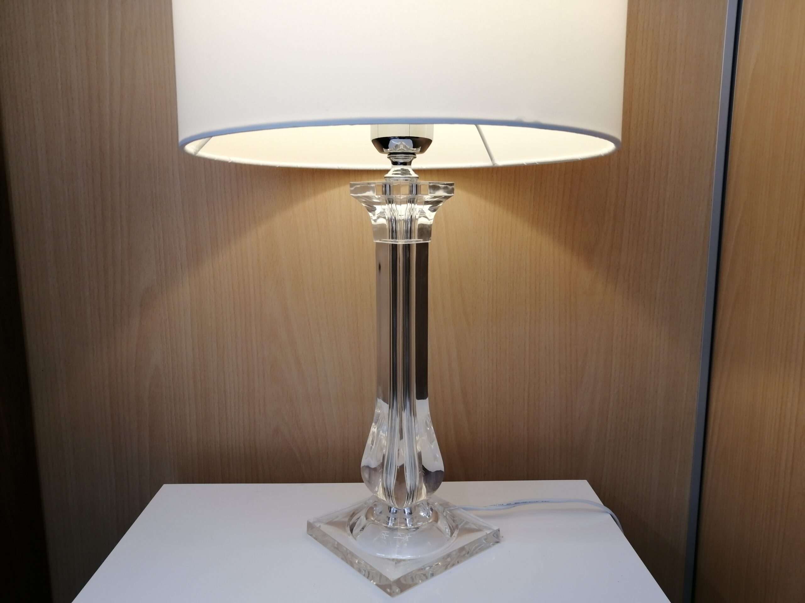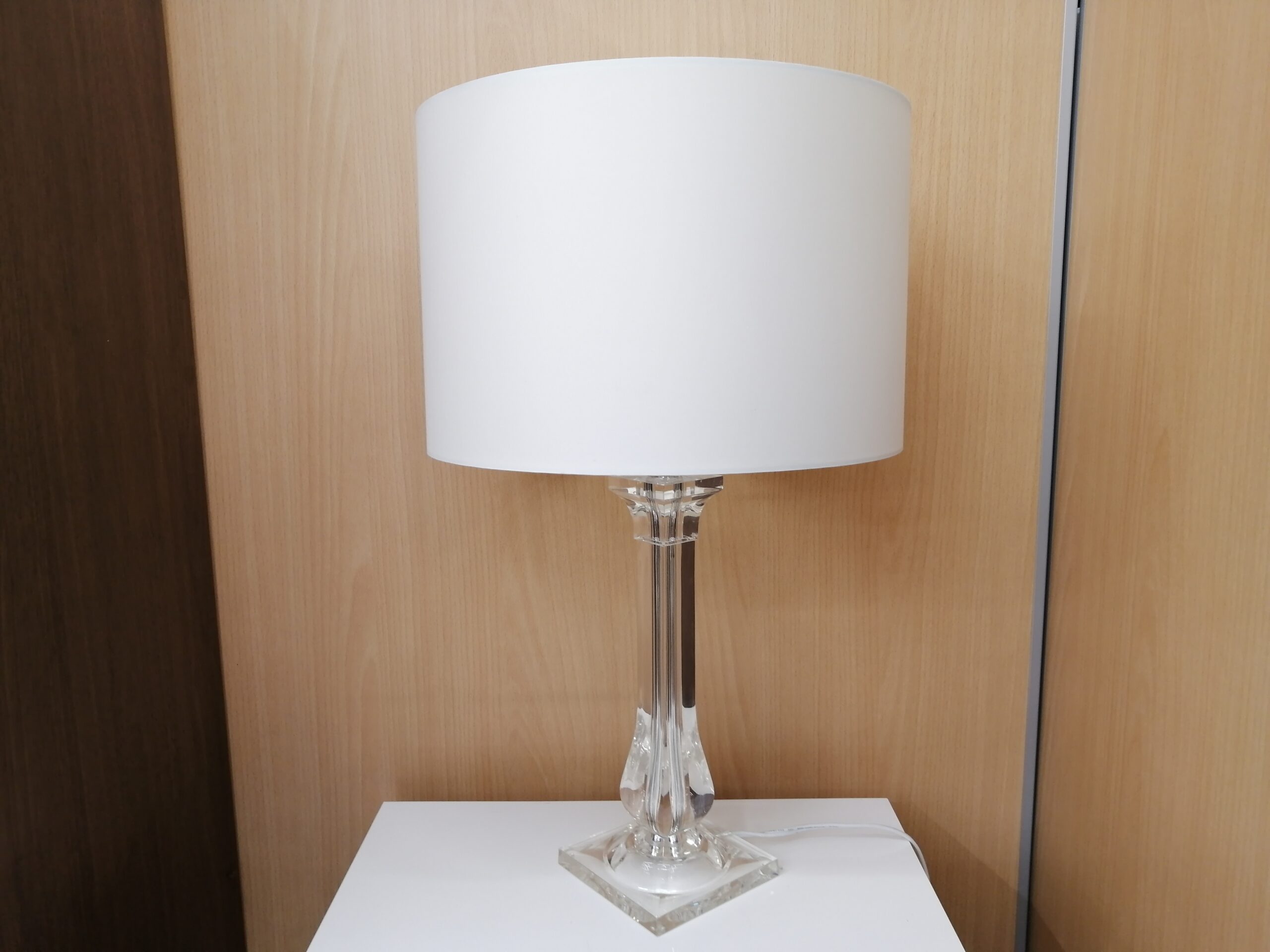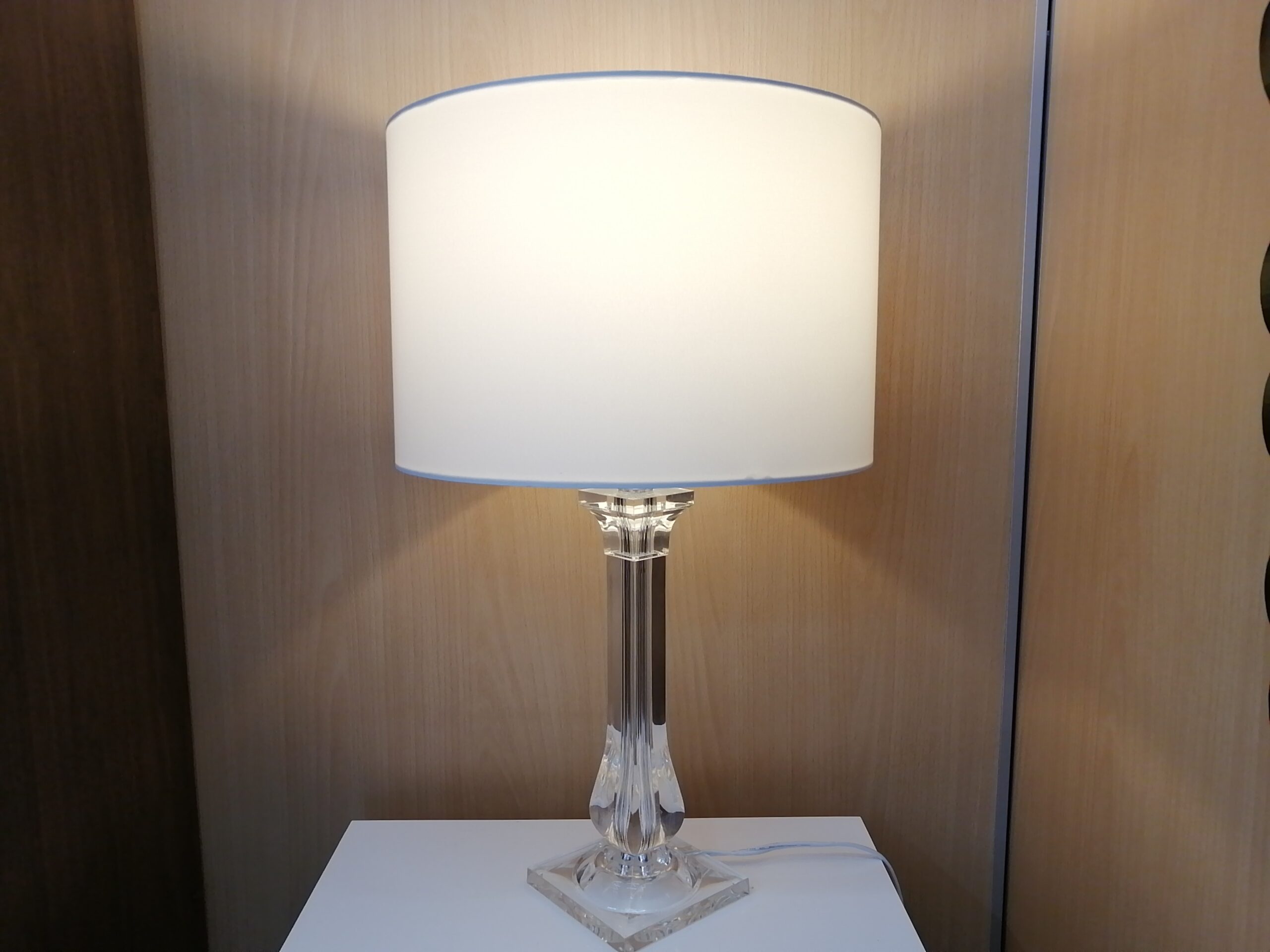 アクリルの長方形の支柱が印象的なテーブルランプ。