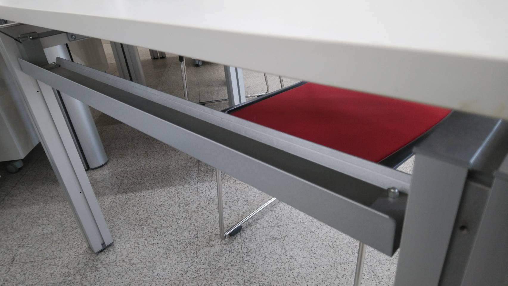 スチールトレー装備で、電源タップやまとめた配線もスッキリ管理