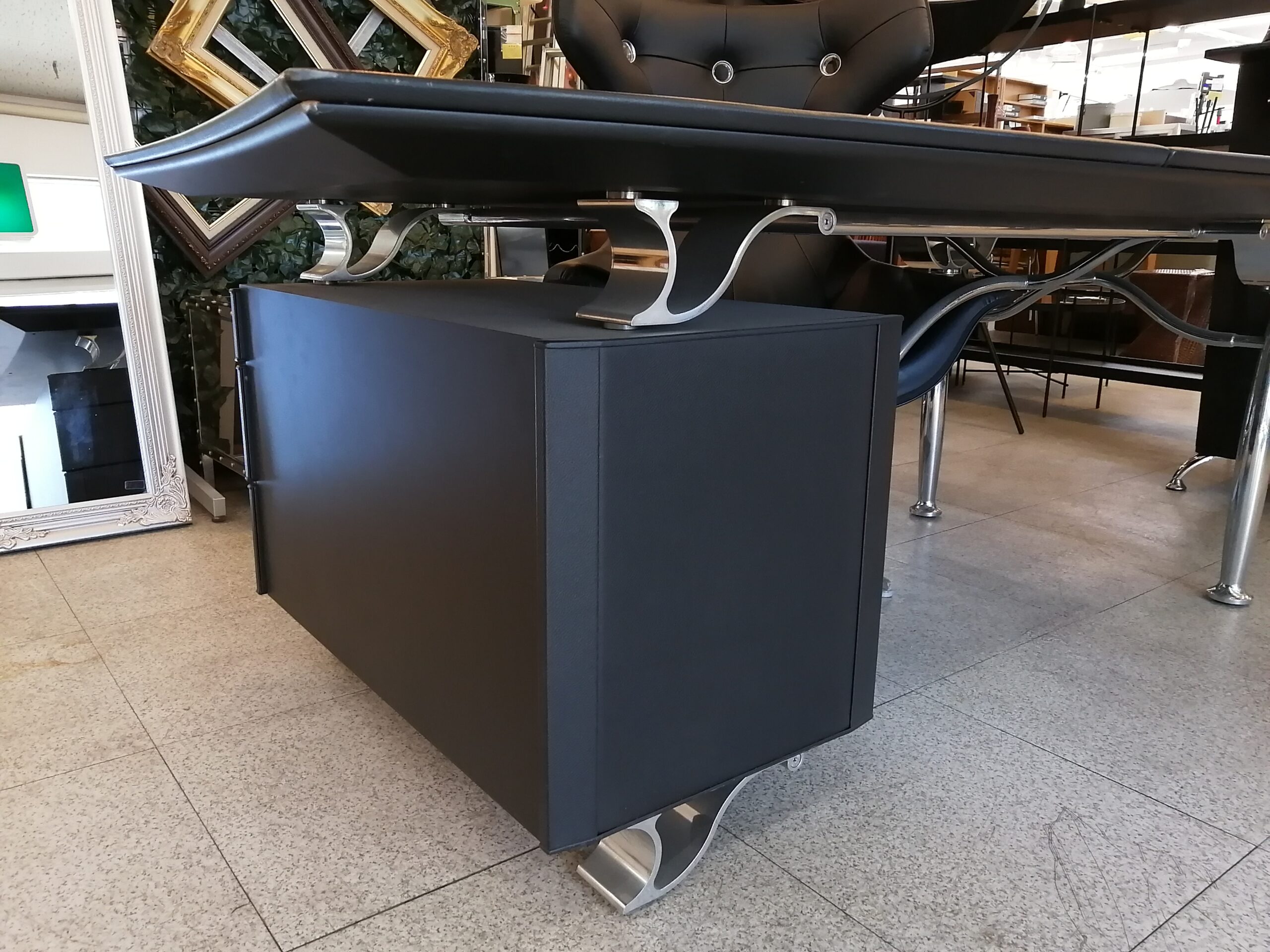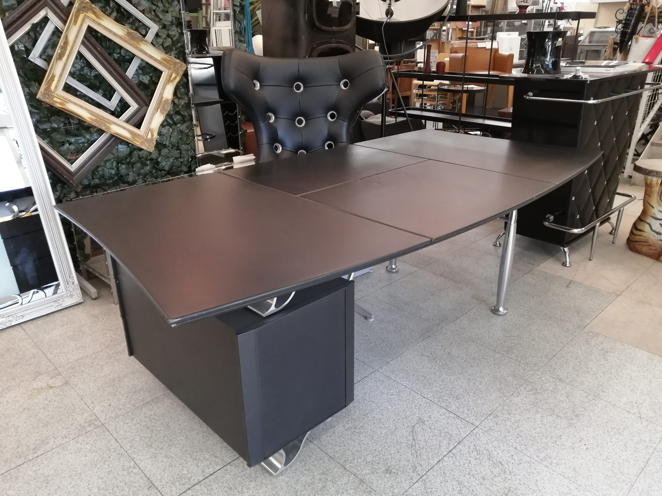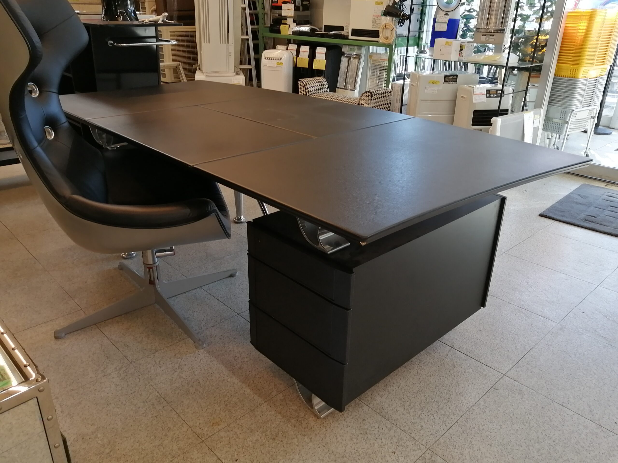 中古 レザー ブラック デスク 書斎机 IDC大塚家具取り扱い