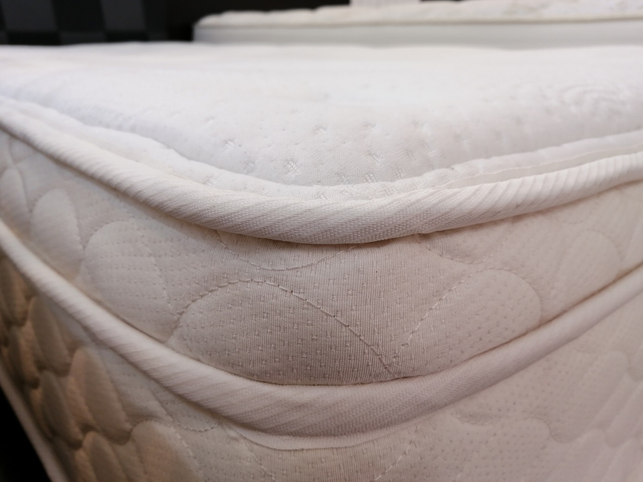 また、表地にはシルクを配し、30mmもの厚さのラテックスをはじめ8層からなる上質の詰め物によって、